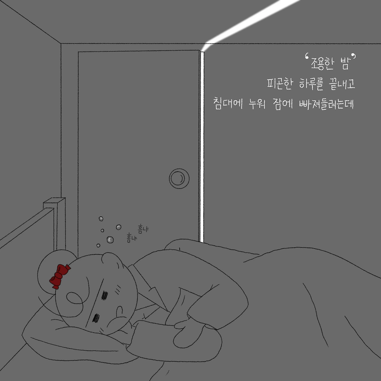 조용한 밤. 침대에 누워 포근한 이불을 포옥 덮고, 두 눈을 꼭 감으면 세상 가장 안락하고 행복한 기분에 휩싸이고 구름에 떠있는 듯 몽롱한 수면에 취해 잠에 빠져들려는 순간, 어김없이 나타나는 우리 집 빌런의 등장.