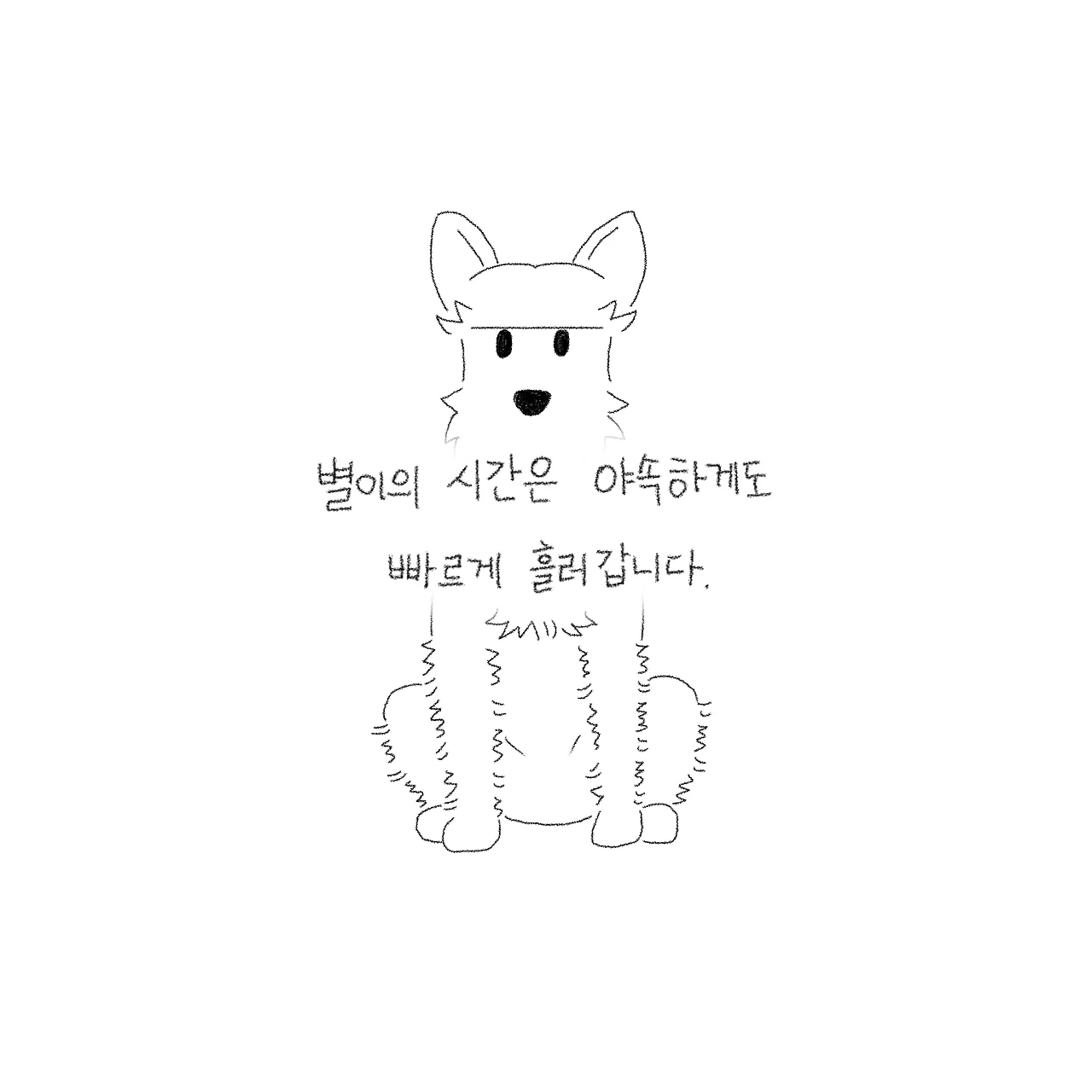 많은 생각이 듭니다. 붙잡을 수만 있다면 붙들고 싶습니다. 그냥 많이도 아니고 천천히 그저 천천히 조금만 늦춰주었으면 좋겠는데...... 반려견의 시간은 너무나도 빨라서 사람인 제가 별이의 시간을 깨닫았을 땐 꽤 많이 늦었더라고요.