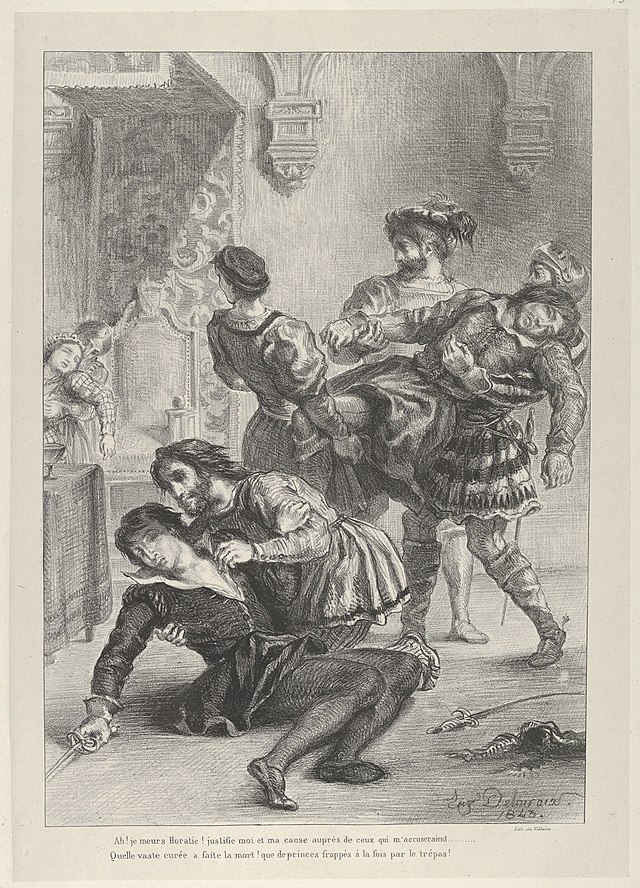 - **극적인 대결**: 햄릿은 클로디어스와의 결전을 준비하며, 이 과정에서 여러 사람의 죽음이 일어납니다. 햄릿의 계획은 결국 클로디어스와의 대결로 이어지는데, 이 대결에서 햄릿, 클로디어스, 거트루드, 그리고 여러 명이 사망합니다.