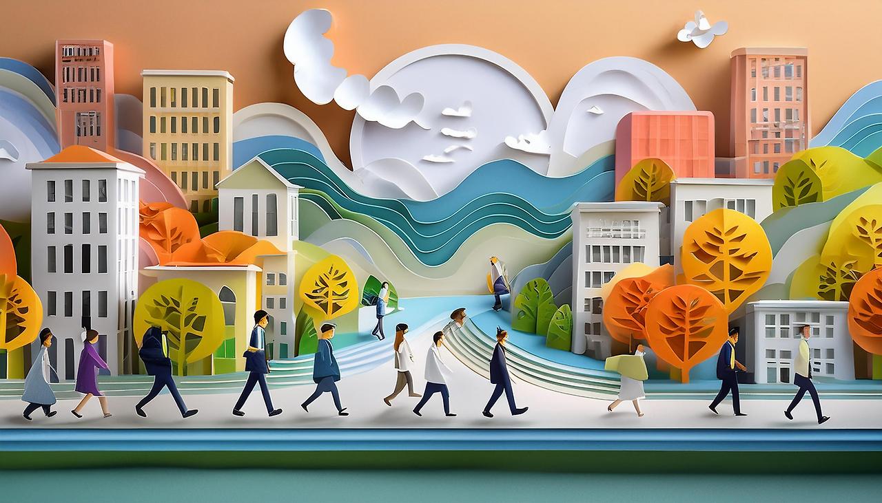 출근길 바쁘게 걷는 사람들, Adobe Firefly로 생성한 이미지