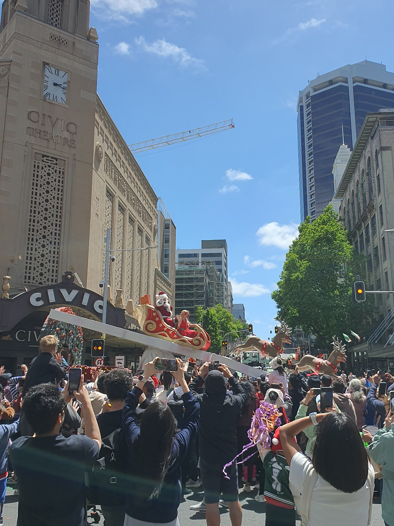 우리는 오클랜드에서 대대적으로 광고하던 산타 퍼레이드를 구경했어. 서울로 치자면 광화문 대로를 전부 통제하고 행진을 한 셈이야. 막상 뚜껑을 열어 보니 롯데월드에서 매일 보여주는 퍼레이드보다 허접하길래 조금 실망했지만, 시민들이 직접 준비한 것이라기에 뉴질랜드답다 싶었어.