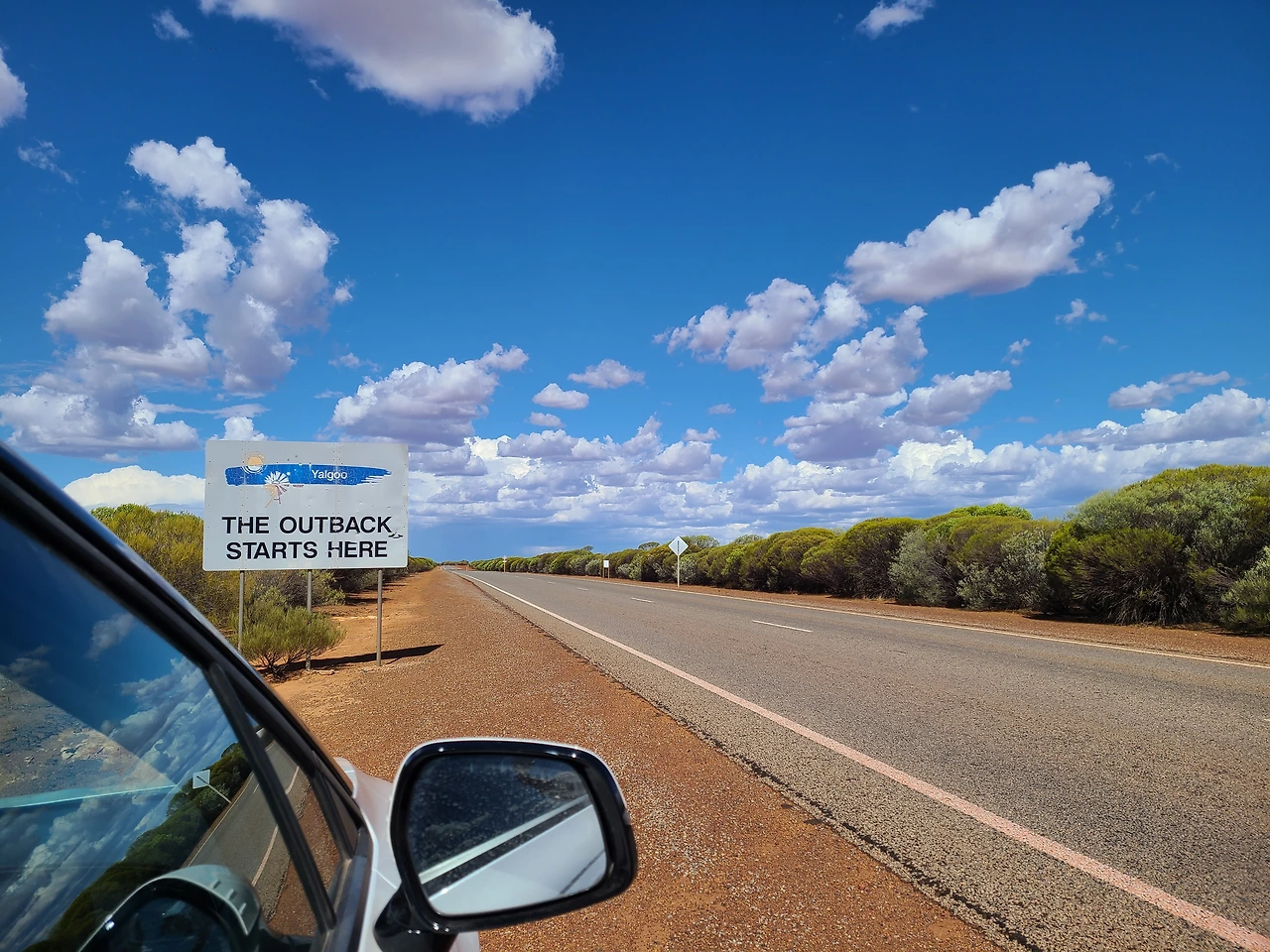 드물게 있는 몇몇 해안 도시를 제외하고는 서호주 어디나 허허벌판뿐인데, 내륙의 사막 쪽으로 들어가면 더 극한의 오지, 아웃백에 닿게 돼. 붉은 땅을 배경으로 호주의 중심을 향해 달리다 보면 표지판을 만날 수 있어.