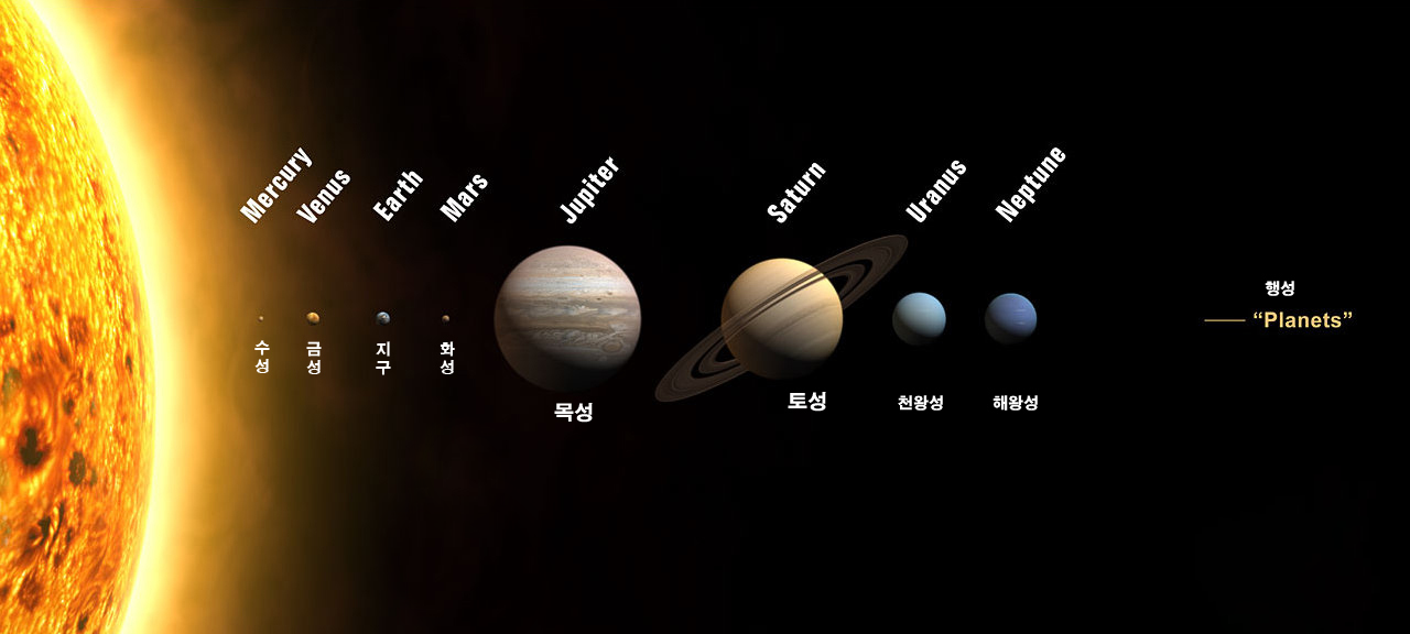 행성(行星)은 수성, 금성, 지구, 화성, 목성, 토성, 천왕성, 해왕성처럼 태양(항성) 주위에서 정해진 궤도를 그리며 도는 천체입니다. 스스로 빛을 내지 못하며 태양의 빛을 반사합니다. 行은 ‘다닌다’는 뜻입니다. 위치가 항상 정해져 있는 항성과 달리 매일 조금씩 위치가 바뀌기 때문에 ‘떠돌이별’이라고도 합니다. 행성을 일본에서는 혹성(惑星)이라고 하는데, 惑은 ‘미혹할 혹’으로 갈팡질팡 하는 모습을 나타내는 뜻입니다. 태양 주위를 떠돌아다니는 모습에서 혹성이라고 한 것이지요.