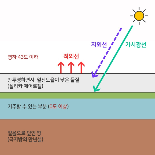 에어로젤은 금속산화물이나 탄소 등 다양한 재료로 만들 수 있는데, 최초의 에어로젤은 실리카(SiO2, 이산화규소)를 이용하여 제조되었습니다. 실리카는 그 자체로도 열전도율이 낮은 물질로, 에어로젤로 만들면 기존에 단열재로 많이 사용되는 유리섬유, 스티로폼, 폴리우레탄 폼보다 3배나 뛰어난 단열 특성을 보이는 것으로 알려졌지요. 그뿐만 아니라 반투명하기 때문에 빛이 통과할 수 있습니다. 그래서 에너지를 절약할 수 있는 투광성 단열재로서 많은 관심을 받고 있어요. 하버드 연구팀이 실리카 에어로젤에 주목한 이유도 바로 뛰어난 단열 특성 때문입니다. 실제로 실리카 에어로젤은 역사상 최초로 화성 표면을 돌아다닌 이동식 탐사 차량 소저너(sojourner)의 단열재로 사용되기도 했습니다.