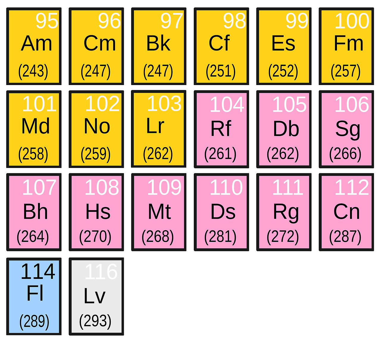 Synthetic Elements, from wikipedia https://en.wikipedia.org/wiki/Synthetic_element