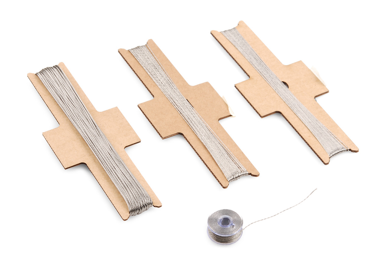 그런데 금속이 아니라 실 중에서도 전도성을 띠고 있는 실이 있습니다. 전도성 실을 이용하면 전선을 연결하지 않아도