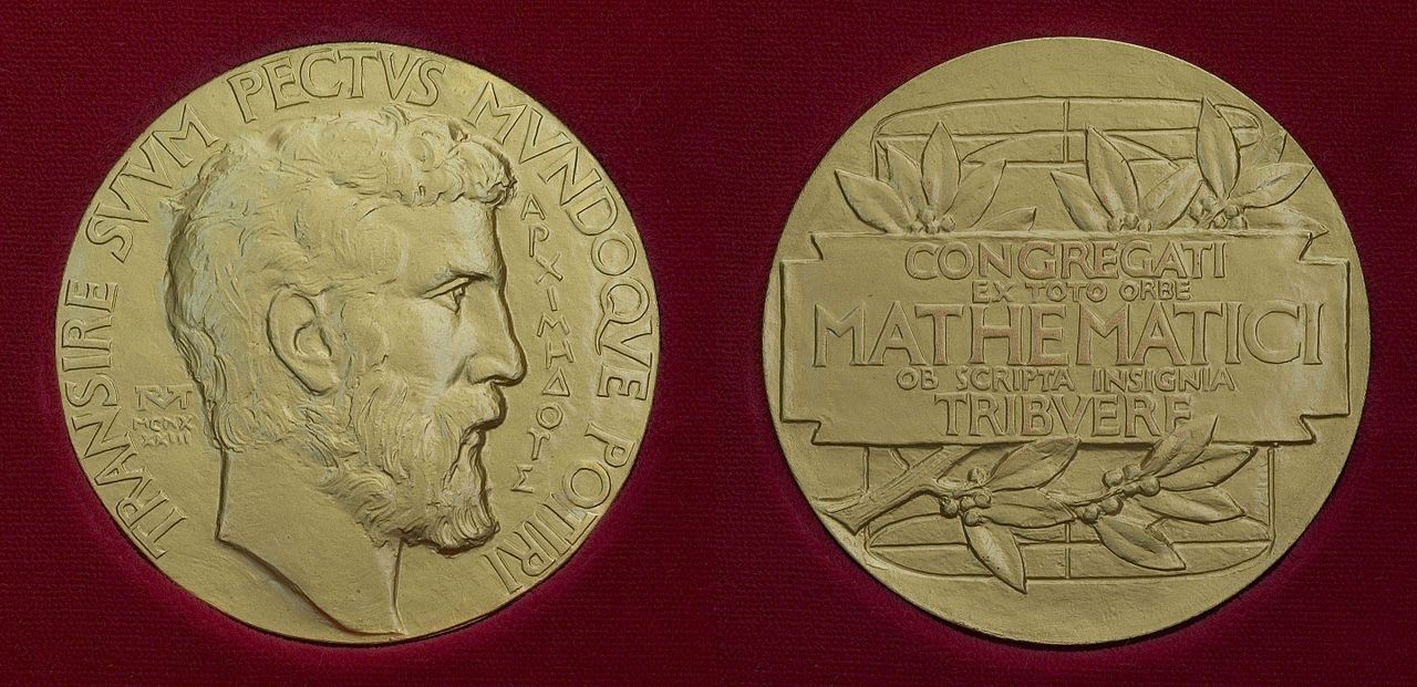 그런데 필즈상의 메달에는 한 남자의 얼굴이 새겨져 있습니다. 혹시 수학자 필즈의 얼굴일까요? 아닙니다.이 남자는 고대 그리스의 수학자 아르키메데스입니다. 메달 앞면은 아르키메데스의 얼굴을 둘러싸고 라틴어 문구가 새겨져 있습니다. “TRANSIRE SUUM PECTUS MUNDOQUE POTIRI”(자신 위로 올라가 세상을 꽉 붙잡아라.)