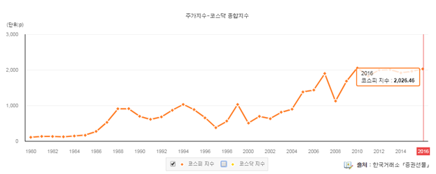 심지어는 대공황 당시도 수익을 낸 유일한 투자수단도 주식이었다. 그러면 어떻게 위험자산으로 분류되는 주식이 가장 확실한 수익률을 낼 수 있을까? 그 해답은 장기투자에 있다. 꾸준히 저평가된 주식을 사들이며 장기 보유하는 것이 그 수익률의 비결이다. 물론 이런 통계가 미국 데이터에 기초한 것이고 한국 투자 실정에 맞지 않다고 생각할 수도 있다. 하지만 제레미 시겔 교수가 미국의 데이터를 분석한 것처럼 한국 주식시장의 장기 수익률 그리고 다른 자산들의 수익률을 비교해 보면 대한민국 주식시장의 성장도 꾸준했다고 볼 수 있다.
