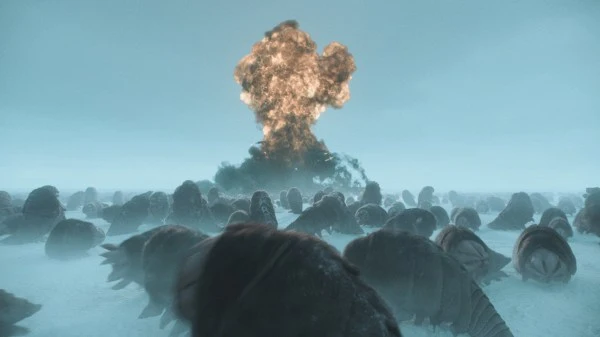 뚜렷한 목적의식의 부재와도 연결되는 부분인데 목적이 뚜렷하지 않다 보니 스토리의 전개도 엉성하고 허무합니다. 미키 17과 18 간의 갈등이 고조되는 듯하더니 갑자기 둘이 팀워크를 발휘하고, 그러는가 싶더니 18번이 갑자기 자살폭탄 작전으로 다소 허무하게 빌런과 함께 죽음을 택합니다. 봉준호 감독이라면 아마 촬영해 놓은 장면이 훨씬 많았을 테고 그 장면들이 영화에도 담겼더라면 이러한 문제를 해소할 수 있었을 텐데 러닝타임을 고려하여 제작사인 워너브라더스의 개입이 있었던 것은 아닌가 조심스레 추측을 해봅니다. 스토리 전개상 잘려나간 부분이 상당히 많아 보였고 그렇다 보니 등장인물의 서사에도 몰입이 되지 않고 공감이 되지 않습니다.