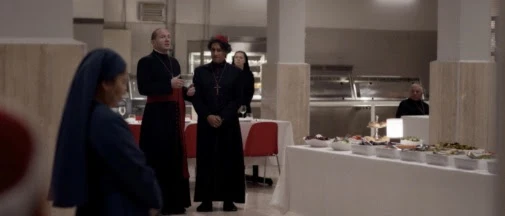 음악 외에는 새로운 등장인물을 영화에 투입 시키는 타이밍과 그 방식 또한 절묘하여 영화의 긴장감을 더해 줍니다. 교황의 자리를 원치 않으나 유력한 후보로 점쳐지는 추기경, 노골적으로 교황의 자리를 탐내는 추기경, 중립적이지만 영화의 초반부터 비리가 암시되는 추기경 등 각자 다른 의도와 성격과 사연을 가진 후보들이 교황청으로 속속 모여 들며 '자, 이제 본격적으로 교황 선출이 시작되겠군'이라고 생각을 하려는 찰나에 미지의 인물, 베니테즈 추기경이 등장합니다. 멕시코 출신인 그는 아프가니스탄 카불의 추기경으로, 그의 안전과 교황청의 안정성 모두를 담보하기 위하여 사망한 전 교황으로부터 비밀리에 임명 됐다는 설정을 가지고 나타나죠. 이 때부터 베니테즈 추기경이 추후 스토리 전개에 있어 분명 중요한 역할을 할 것으로 암시되고, 그것이 어떻게 드러날지 관객들로 하여금 상당한 궁금증을 자아냅니다.