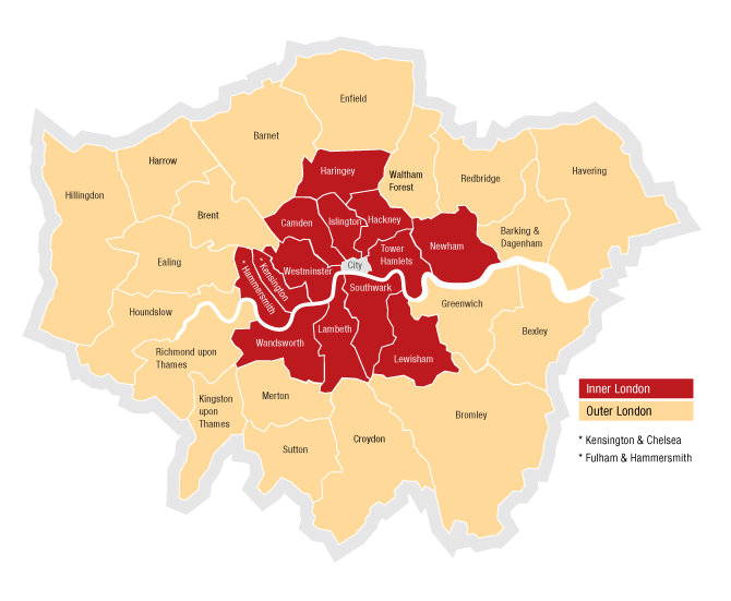 GLA라는 약칭을 쓰는 런던시청의 정식 명칭은 Greater London Authority인데, 왜 그런 이름이 붙었는지 생각해 볼 필요가 있다. 그 이름이 집약적으로 런던을 설명해주고 있기 때문이다. 왜 Greater냐?, City of London뿐만 아니라, 그를 중심으로 둘러싸고 있는 32개 구청을 포함한다는 의미로 Greater를 쓰고 있기 때문이다. 그 전에도 Greater London이라는 표현이 쓰여왔다고는 하지만, 3년 간의 조정 과정을 거쳐 1963년 런던시 조례(The London Governement Act 1963)에 의해 공식적으로 Greater London이 공표되고 1965년부터 시행되게 된다. 그 32개의 구청들은 12개의 Inner London과 20개의 Outer London으로 구성되어 있다.
