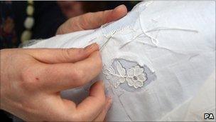 영국 왕세자비의 드레스에 자수를 놓은 왕립자수학교