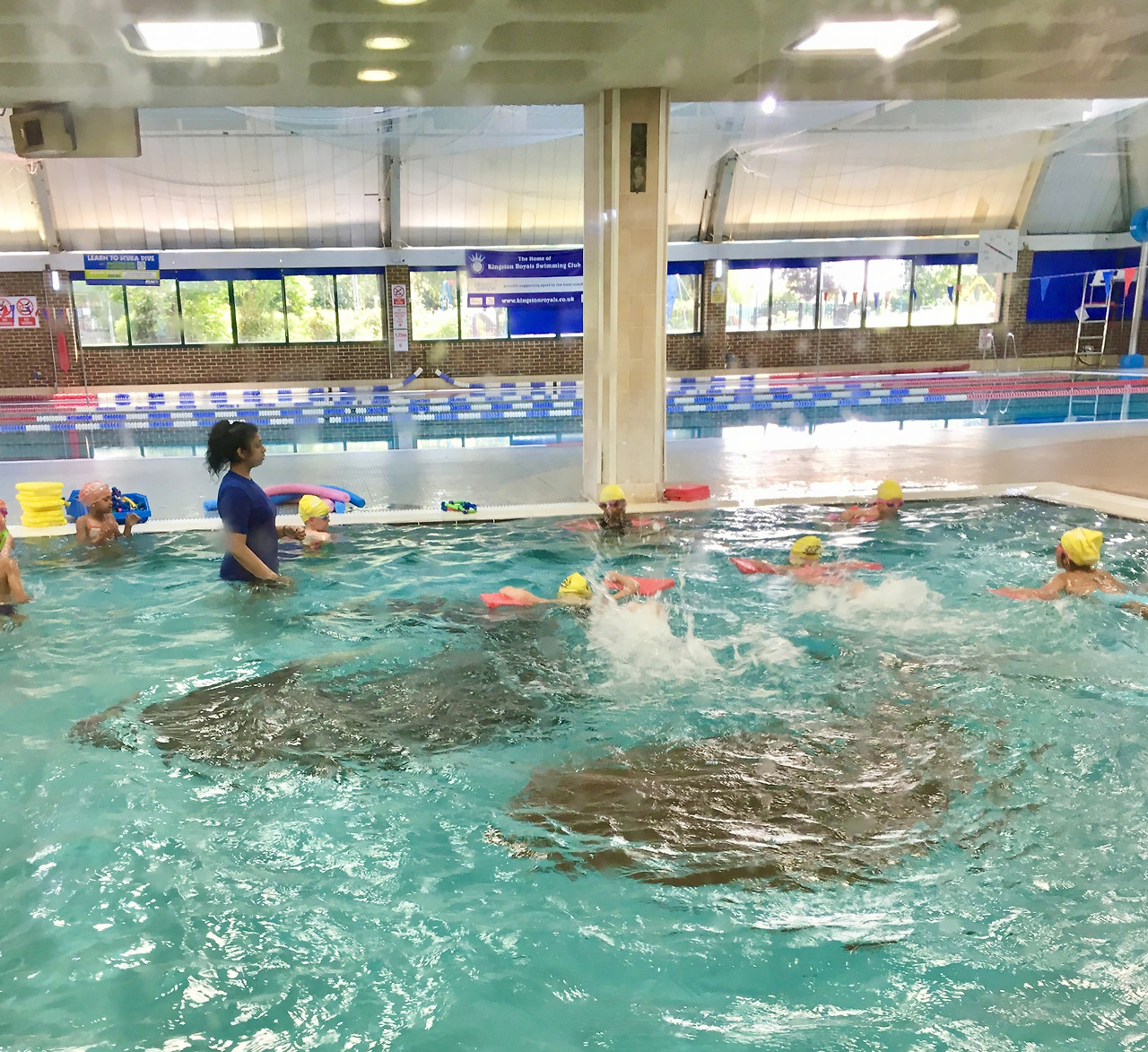 킹스턴에는 구립수영장이 두 곳 있었다. 킹피셔 수영장과 몰든센터 수영장인데 두 곳 모두 일반풀과 키즈풀이 각각 있고 아이들 수영 강습은 키즈풀에서 한다. 킹피셔는 물놀이 시설이 잘되어 있고 파도풀이기도 해서 재미있다는 장점이 있다. 몰든센터는 마지막에 수심이 3M인 구간이 있어서 다이빙 연습이나 생존수영 연습이 가능하다.