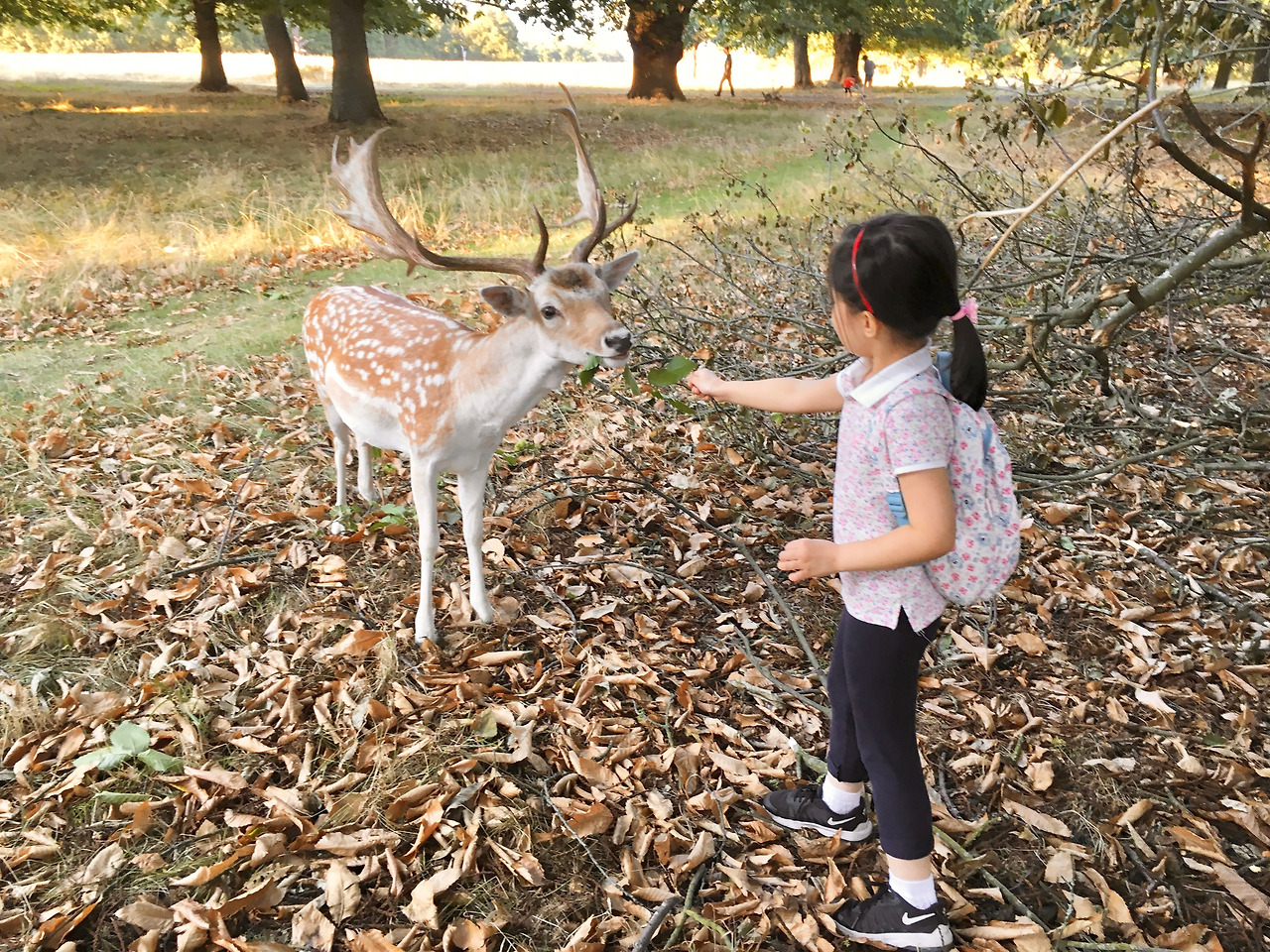 아이는 8월, 사슴들의 활동이 활발해져 리치몬드파크 자동차길 변에서 사슴 떼가 쉬고 있을 때 먹이 주었던 일을 일기로 써서 제출했던가보다.