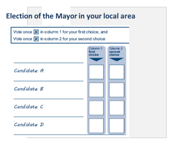그럼, '나머지 4개 구는 어떻다는 것이냐?'하면, 우리와 같은 직접 선출 방식이다. 다만, 우리는 후보자 중 한 사람만 찍는 방식이라면, 런던 시장 직접 선출은 Supplementary Vote 방식으로 2명의 후보를 찍는다. 그 투표에서 한 후보가 50%의 득표를 하면 선출이 되지만, 50% 미만의 득표율이면 최종 2명에 대한 투표를 재 실시한다. 그렇게 직접 선거로 뽑힌 시장은 다른 구의 Mayor와 CEO의 책임과 권한을 동시에 수행하게 된다. 그 4개 구는 Hackney, Lewisham, Newham, Tower Hamlet이다.