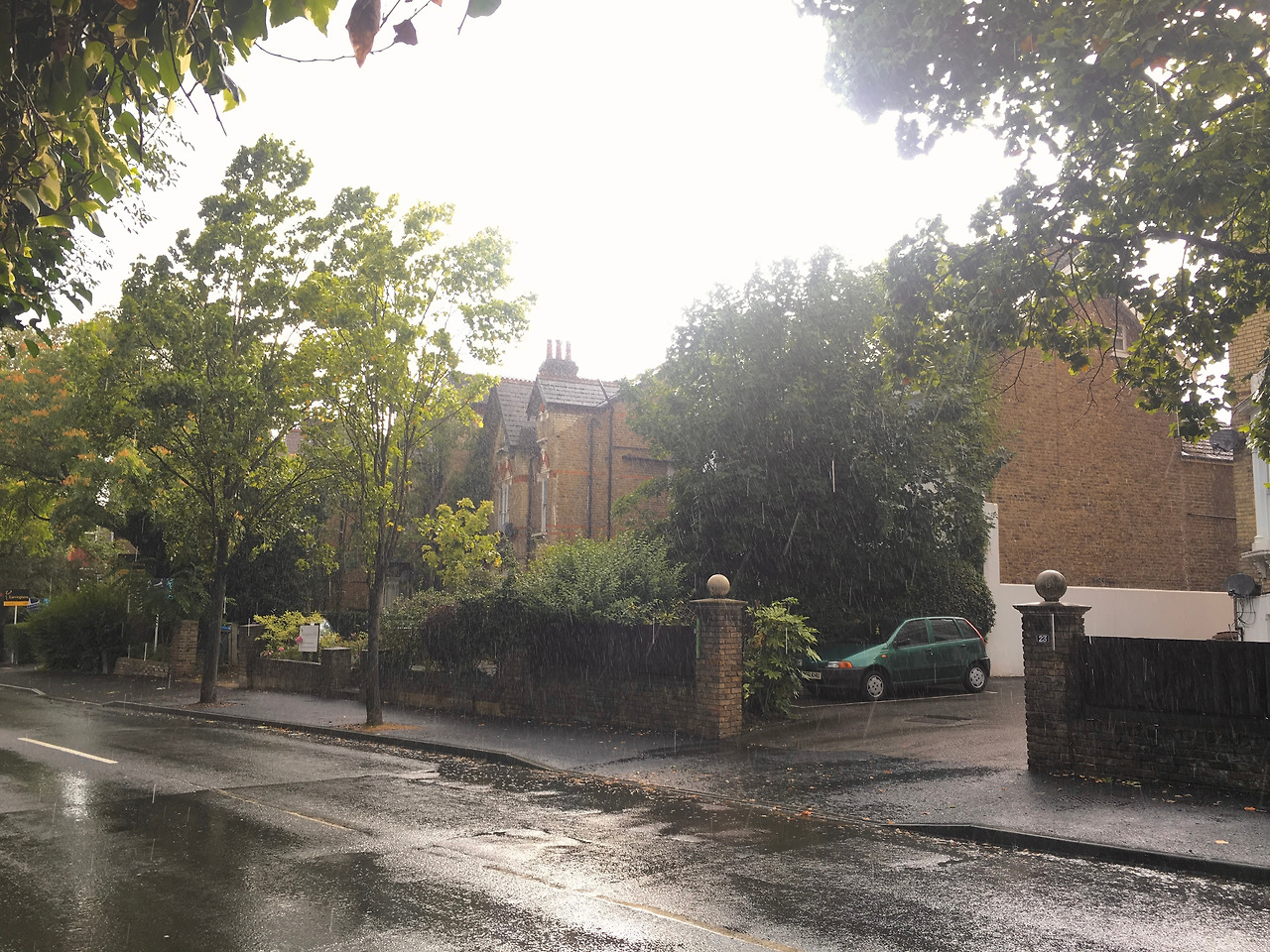 런던의 흔한 비 오는 풍경