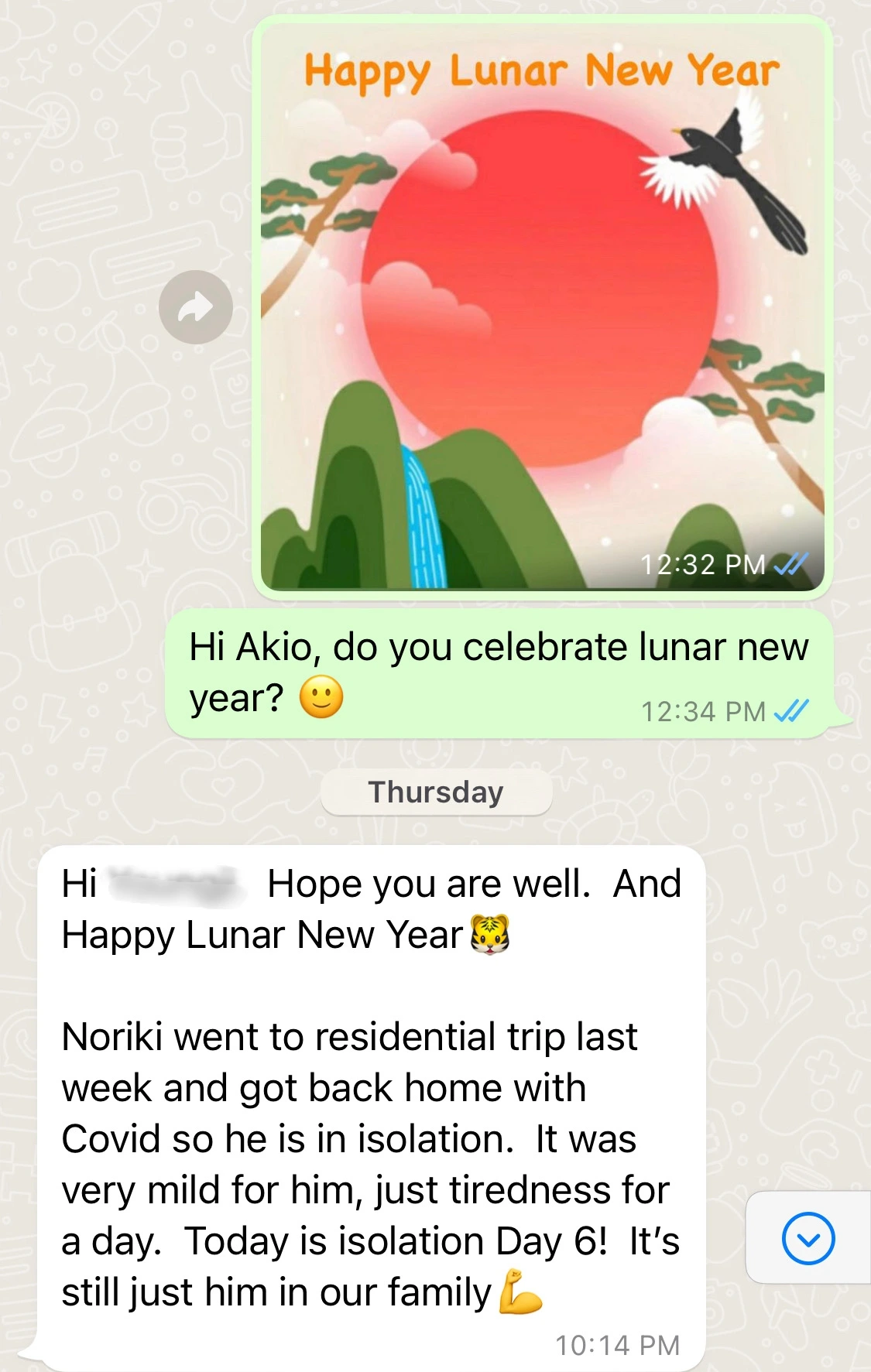 3일 뒤 아이코는 다시 연락이 왔다. 노리키가 음성이 나와서 이제 자가격리에서 모두 해방되었고 가족들도 모두 감염되지 않은 채로 끝났다고 말이다. 그 여행에서 같은 반 아이들 9명이 코로나에 걸렸었고 다른 반에도 발병자가 있었다는 자세한 이야기를 할 겨를이 아이코에게 생겼나 보다.