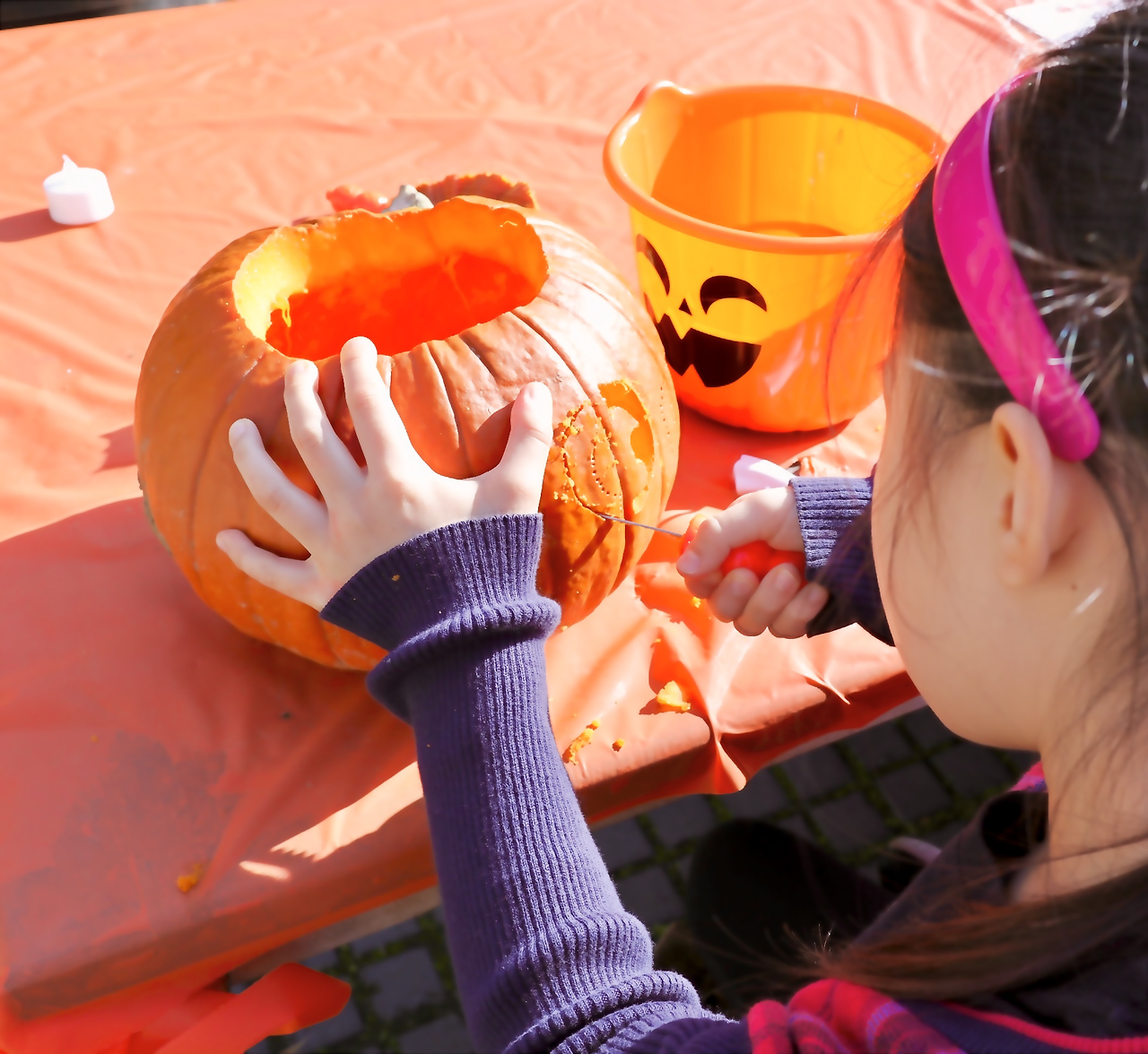 호박을 깎는 건 꼭 모던홀파크 같은 공원이 아니라도 아이 학교에서 보내주는 동네 소식지 같은 걸 잘 살펴보거나 대형 마트의 깜짝 이벤트 같은 것에서도 소소하게 행사를 하는 것을 발견할 수 있다.