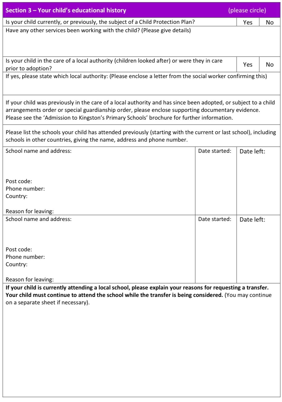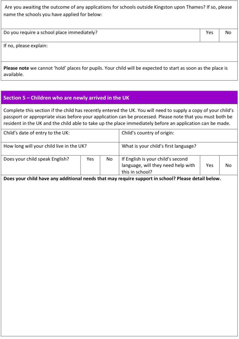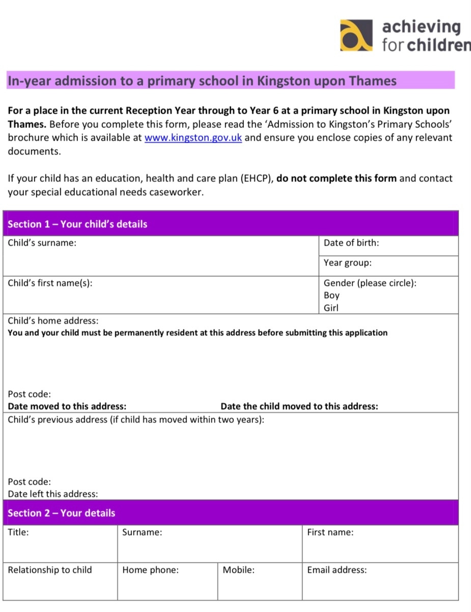 만 4세 리셉션이나 만 5세 가을 1학년 입학이랑 시기가 맞는 경우가 아니면 모두 In Year라는 전학으로 간주 처리된다. 이러한 경우에는 eAdmission을 통하지 않고 In Year 서류를 내려받아서 작성 후 직접 제출해야 한다. 정신없이 집을 구하고 차를 사고 정착을 하는 중에 이런 서류를 어디서 출력해야 할지도 막막하고, 바쁜 와중에 작성하는 것은 버겁기도 하고 실수를 할 수 있을 것 같아서 한국에서 미리 3-4부 출력을 하고 한부 정도는 주소와 지원 학교명만 빼고 채울 수 있는 만큼 채워서 영국으로 출발했었다.