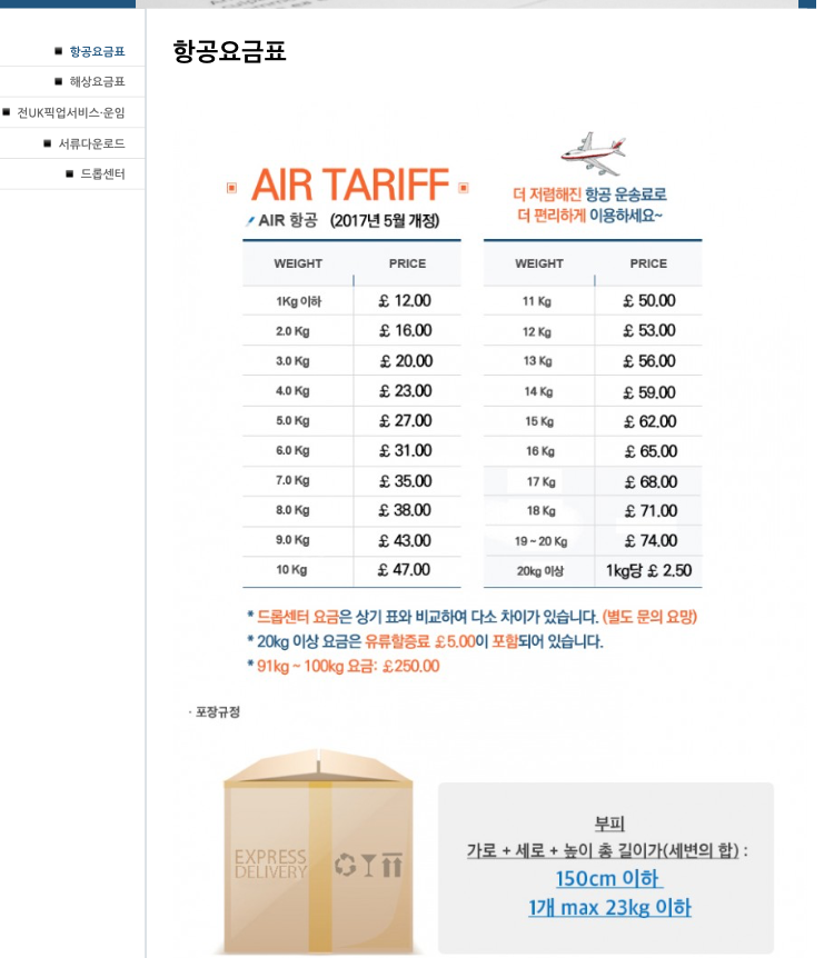 먼저 어떤 해외배송 회사를 이용할지, 이삿짐을 항공과 해상 중에 어떤 것으로 보낼지 정해야 했는데, 짐을 빨리 받아 생활하는 게 우선이었기 때문에 주저 없이 항공으로 정했다. 한인마트에서도 해외배송을 해주긴 했지만 10박스가 넘을 걸로 예상되던 짐을 다 마트까지 가져가야했기 때문에 선택지에 넣을 수 없었고, 픽업이 필수조건이었다. 한 업체의 홈페이지에 안내된 무료 픽업 지도에서 우리집이 무료 픽업 대상인지 확인하고 그 업체에서 하기로 결정했다. 지금은 코로나 상황이라 물류의 비용과 조건들이 들쑥날쑥한 것 같지만, 100킬로가 넘는 짐은 킬로당 2.5파운드였다. 업체에 전화해서 몇 가지 확인을 하고 예약 글을 홈페이지에 남기니 예약 확인 메일에 첨부된 신청서 및 물품 확인서들을 쓰면 접수가 완료되었다.