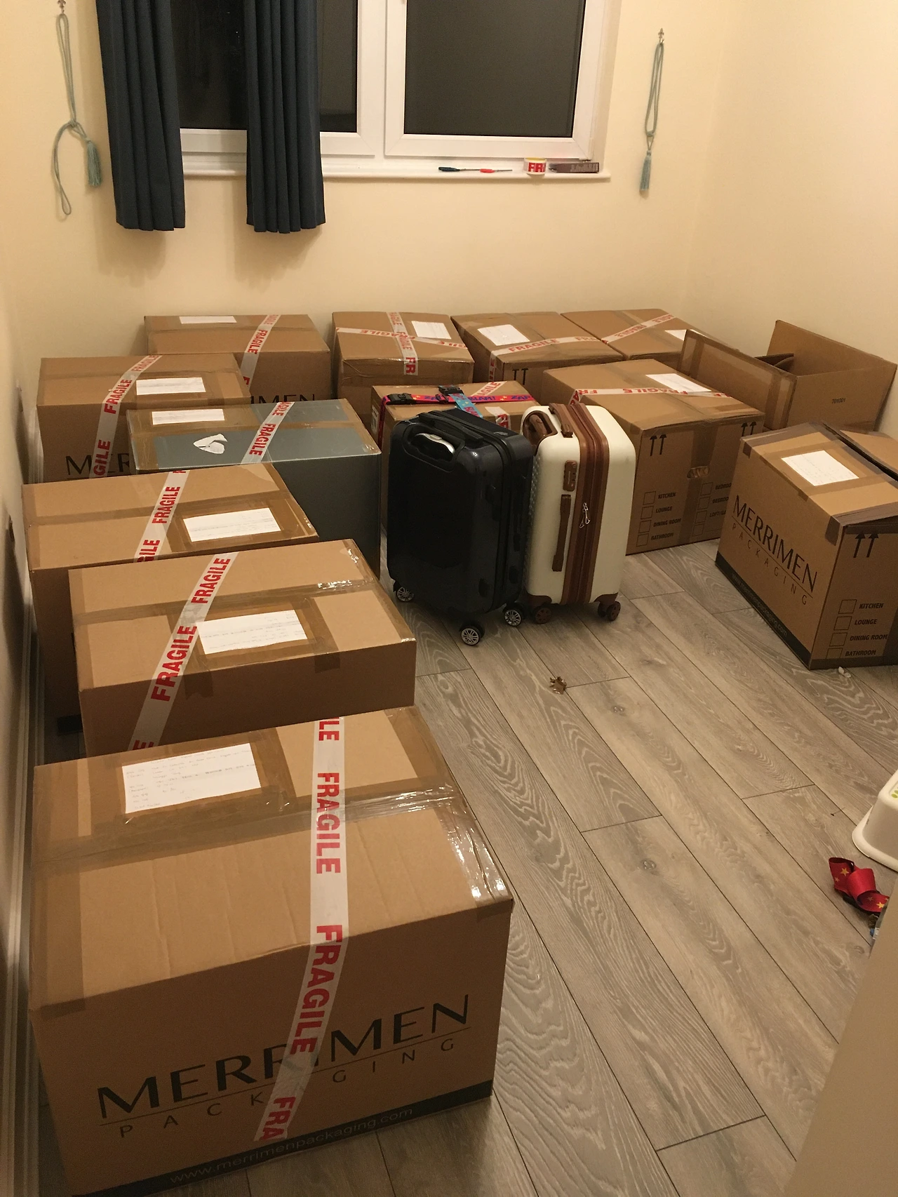 예상치도 못하게 이삿짐 박스를 구하는 것도 고민거리가 되었다. 한 박스는 중량 23kg, 3면 길이의 합이 150cm를 넘기면 안 되기에 그 규격을 확인해서 주문해야 했고, 몇 겹 종이 박스를 해야 해외 이삿짐에 적합할지도 고민해야 했다. 가격도 상당해서 고민 끝에 3ply로 15박스를 이베이에서 주문했다. 10박스면 되리라 생각했던 짐은 하나씩 하나씩 늘어 13개가 되었다.