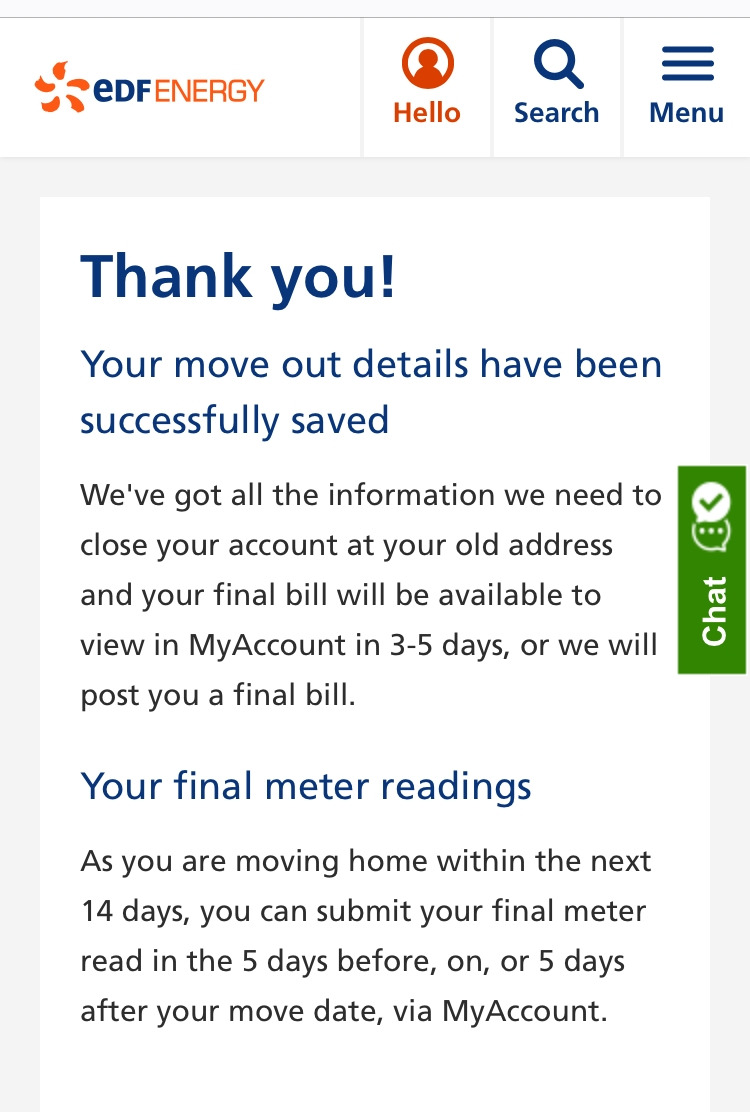 마지막으로 집을 나오면서 처리하면 되는 것이 전기였다. 전기회사로는 메이저 회사인 EDF였는데, 2년 사는 동안 기존 사용량 데이터로 기반으로 부과된 요금이 3개월마다 우편물로 고지되고 인터넷이나 이체로 납부하는 방식에서, 앱이 생겨서 직접 미터를 입력하고 앱에서 바로 납부하는 방법으로 바뀌었다. 그래서 예전에는 퇴거 일에 미터를 읽어서 전기회사에 전화를 하고 부동산에 돈을 맡겨서 납부를 해야 했다고 하는데, 그냥 앱에서 해지 신청을 사전에 하고 퇴거일에는 미터를 입력하고 납부하고, 화면을 스크린 캡처해서 부동산에게 보내주는 것으로 가장 쿨하게 마무리되었다.