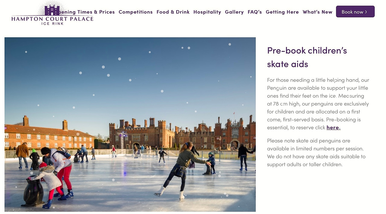 시크릿런던에서는 좀 더 주요 관광지 안에 운영되는 스케이트장을 소개하고 있는데, 자연사박물관, 런던탑, 하이드파크 그리고 물론 햄튼코트팰리스도 포함된다. 모든 스케이트장에서는 스케이트를 대여할 수 있다.