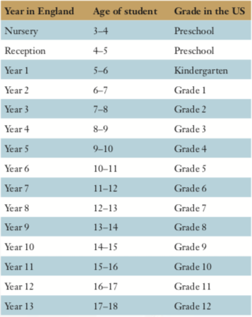 미국은 한국과 같이 만 6세에 1학년이 되는 반면, 영국은 만 5세에 1학년을 시작한다는 뜻이지요. 2014년 생이 우리는 2021년 봄에 1학년이 되고, 미국은 2014년 1~8월생까지는 2020년 가을에 1학년, 2014년 9월생부터 2015년 8월생까지는 2021년 가을에 1학년 됩니다. 하지만, 영국은 1년씩 빨라서, 2021년 1학년이 2013년 9월생부터 2014년 8월생까지인 것입니다.