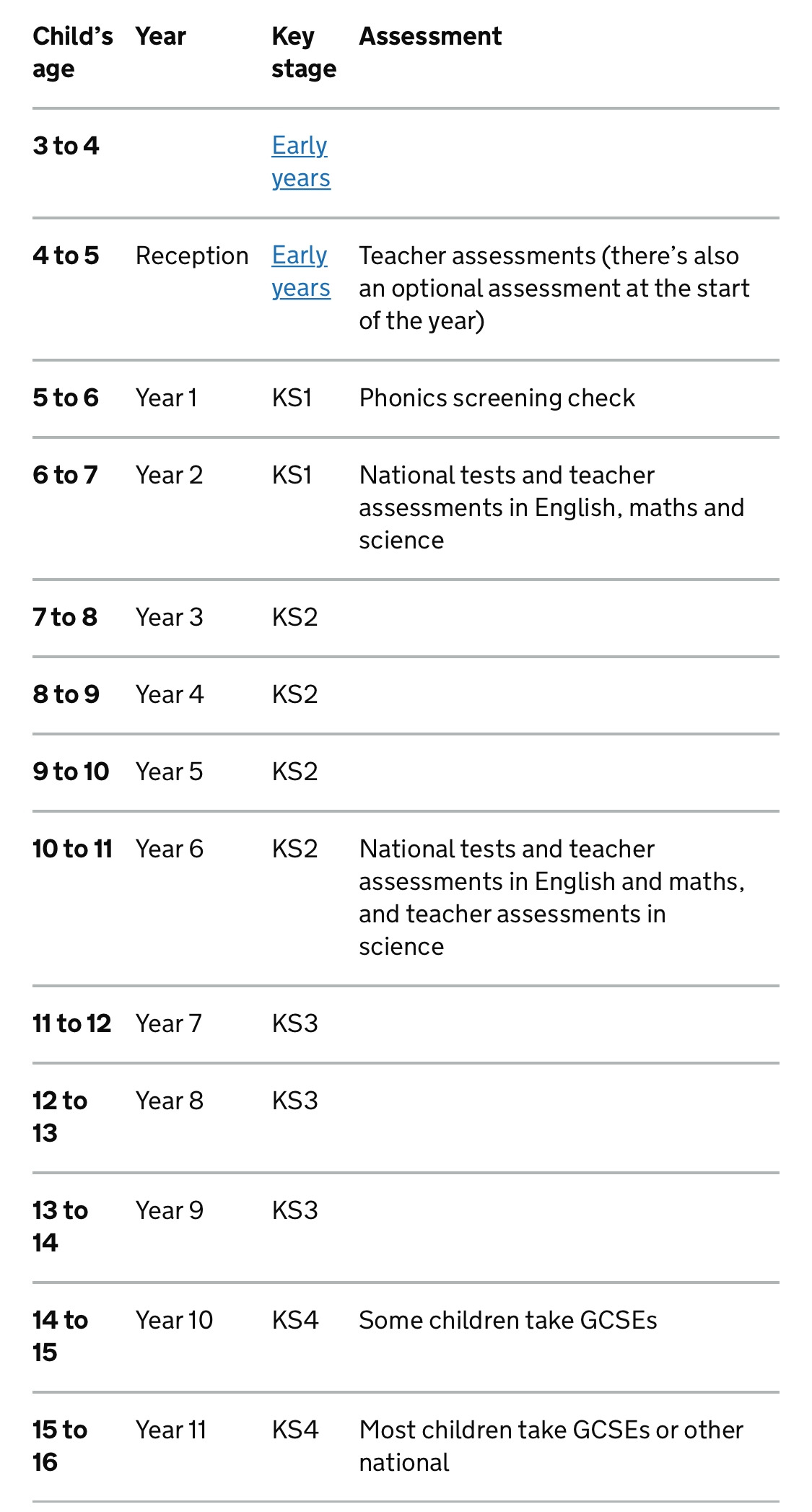 미션 파서블, 영국 학교에 아이 입학시키기-나이에 따른 학교 분류