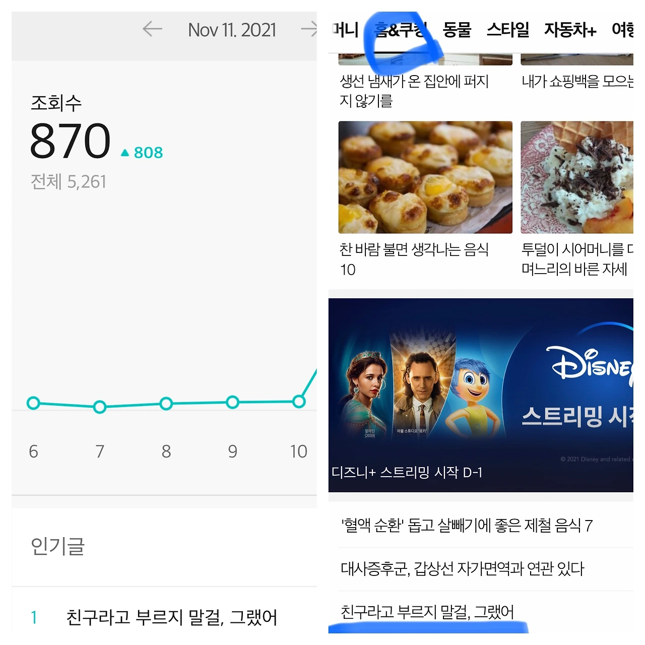 브런치 작가가 되고 2~3 달의 시간이 흘렀다. 그동안 20여 편의 긴 글과 100여 편의 짧은 글을 남겼다. 그동안의 조회수를 모두 합쳐도 4000이 조금 넘는 숫자인데, 하루 만에 870을 찍었다. 누군가는 메인에 노출되면 5000 이상을 찍었다고 하던데 나에게는 저 숫자도 대단한 일이다.