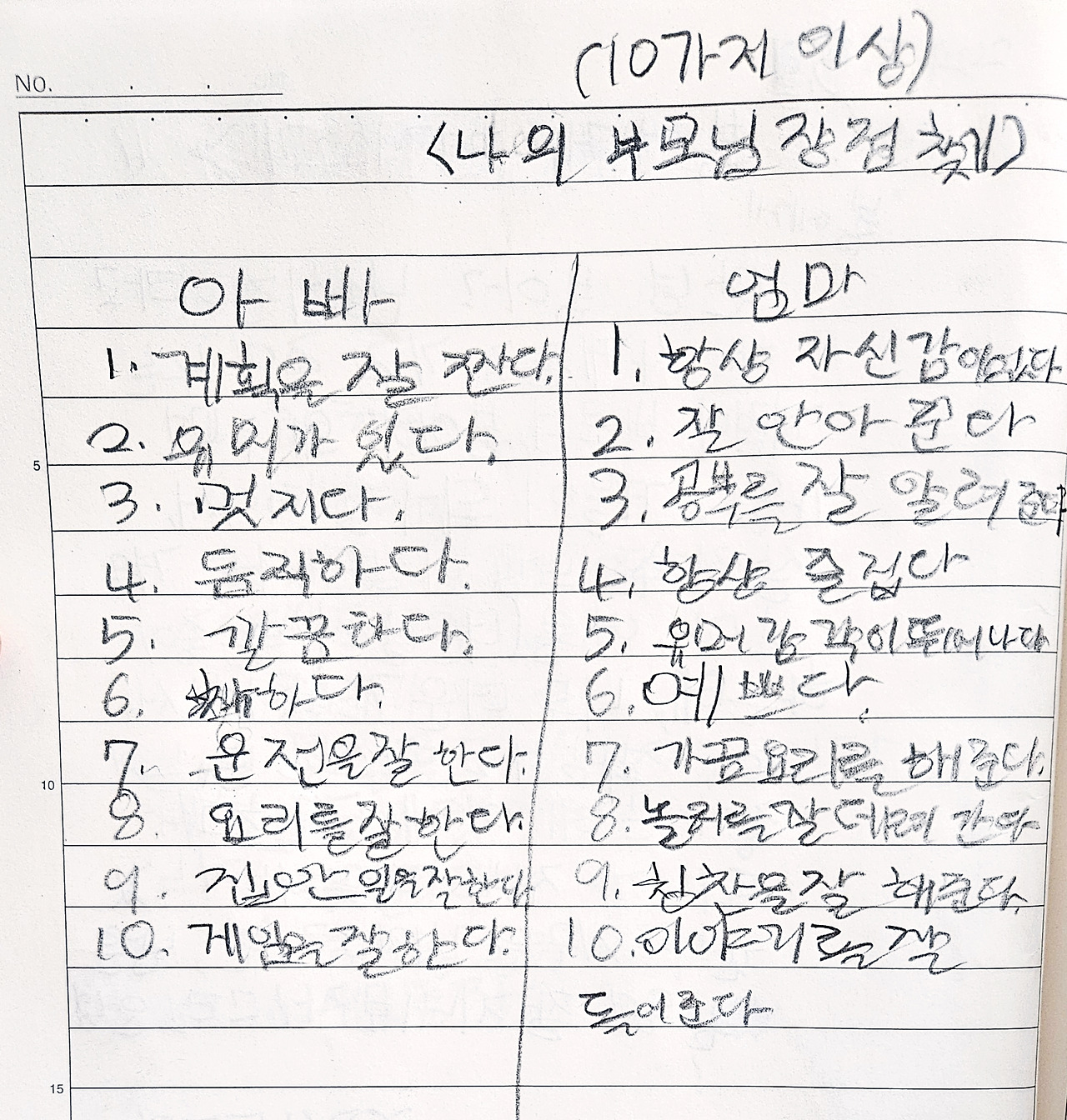 나의 부모님 장점 찾기