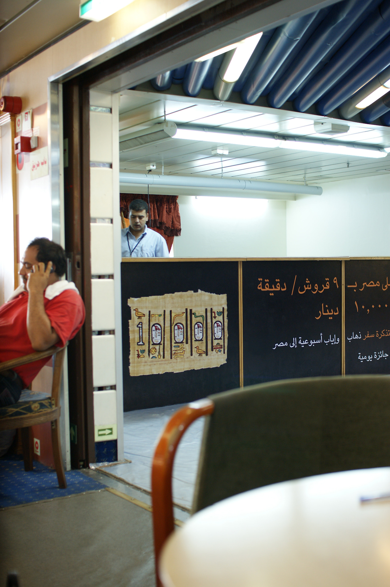 황량한 항구, 딱딱한 대합실 벤치에서 혹시나 동양인이 없을까 계속 두리번거렸다. 내 자리 주변엔, 선착장 안에 들어올 때부터 만나게 된 현지인 가족이 있었다. 선착장 입구에서 부터 안내를 도맡아 해준, 보석알이 무거울 정도로 큰 반지를 두 개씩이나 낀 아주머니와 아들은 시종일관 나를 챙겼는데, 타지에서 이렇게 보살핌을 받아본 적이 있나, 생각해볼 정도였다. 나에게 아랍어란 그저 곡선의 유희이자 낙서같은 형상일 뿐이고, 아주머니도 영어는 한 마디도 못하는 현지인이었다. 그저 히잡 속에 동그랗게 나온 얼굴에서 미소를 발사하며 눈짓과 손짓으로 나를 이끌고 다녔다. 표 검사까지 마치고 대기실에 오니, 이제 안심하라고 몸짓 가득히 보여준다. 달달하고 뜨끈한 차이도 한 잔 사주기까지. 타지에서의 이유 없는 호의는 대체로 사양하는 것이 맞지만, 내 상태가 제정신일 리도 없었다.(생각해보면, 밤새 쉬지 못한 내 행색이 이름모를 사람들에게 그렇게 보살핌을 받기에 충분했을지도 모른다.) ‘슈크란(=thank you)’이라는 쌩기초? 아랍어도 알았지만, 제정신이 아니므로 전혀 쓸모가 없었다. 그저 반사적으로 ‘땡큐’만을 내뱉으며 보석알 아주머니 꽁무니를 쫓아 다닌 셈이다.
