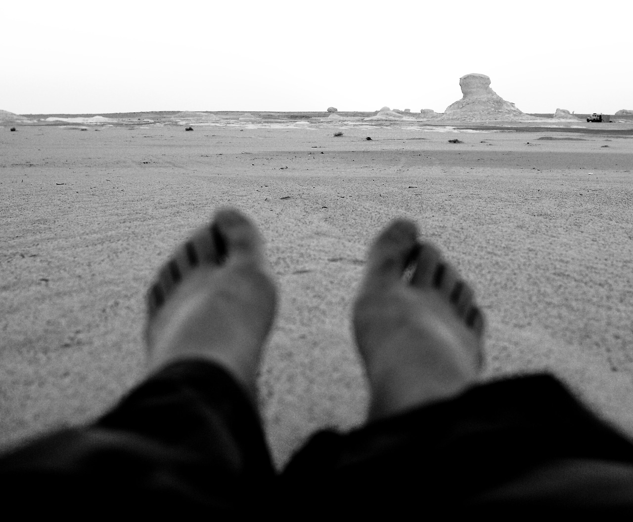 사막에선, 신발의 기능도 부질없을 뿐이다. 그저 맨몸으로 버티는 것이 가장 효율적. 그렇게 가만히 있으면 온 세포에 모래 알갱이가 한 개씩 붙어버린 것처럼 점점 피부에 모래가 쌓인다. 아마 조금만 더 그렇게 있었다면, 내 키만큼의 모래산이 되어 그대로 형체도 없이 묻히는 것은 시간문제일 것이었다.