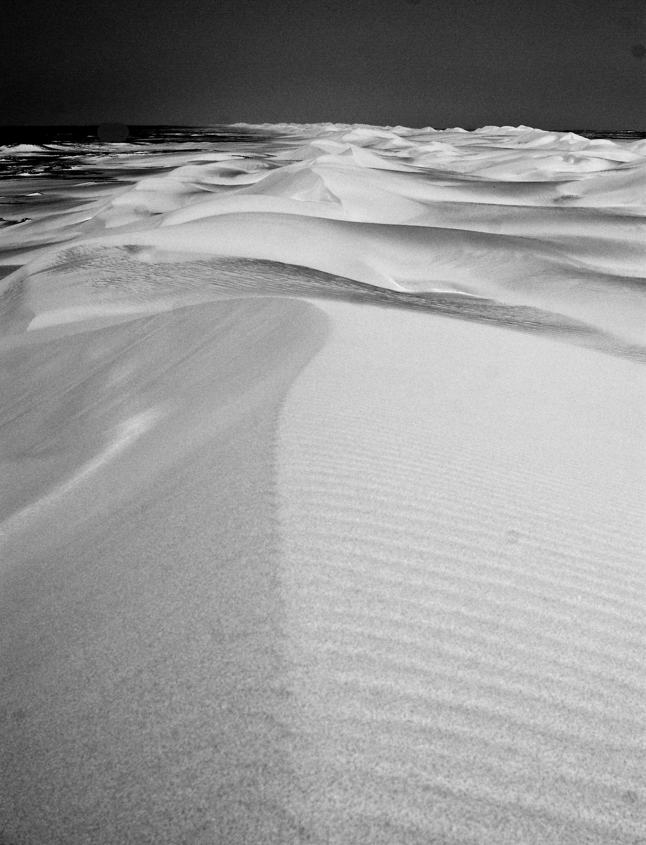 먼저 흔히 말하는 모래 언덕(sand dune)을 처음 접했을 때의 경이로움에 대해 설명이 필요할 것 같다. 크고 작은 모래알이 끝없이 쌓이는 땅. 흙모래가 흩날리며 온 대지를 뒤덮어 그것 하나뿐인 공간이다. 마치 세상에 존재하는 유일한 물질인 듯, 어느 방향으로 시선을 돌려도 땅 위에는 돌무더기 혹은 모래언덕의 음영만이 시야를 덮는다. 그 어떤 생명도 이곳에서 살아나갈 수 없고, 언젠가는 이대로 함께 바람과 함께 사라져 버릴 것이다. 사멸에 대한 운명. 그 과정과 결과가 눈앞에 펼쳐져 있었다.