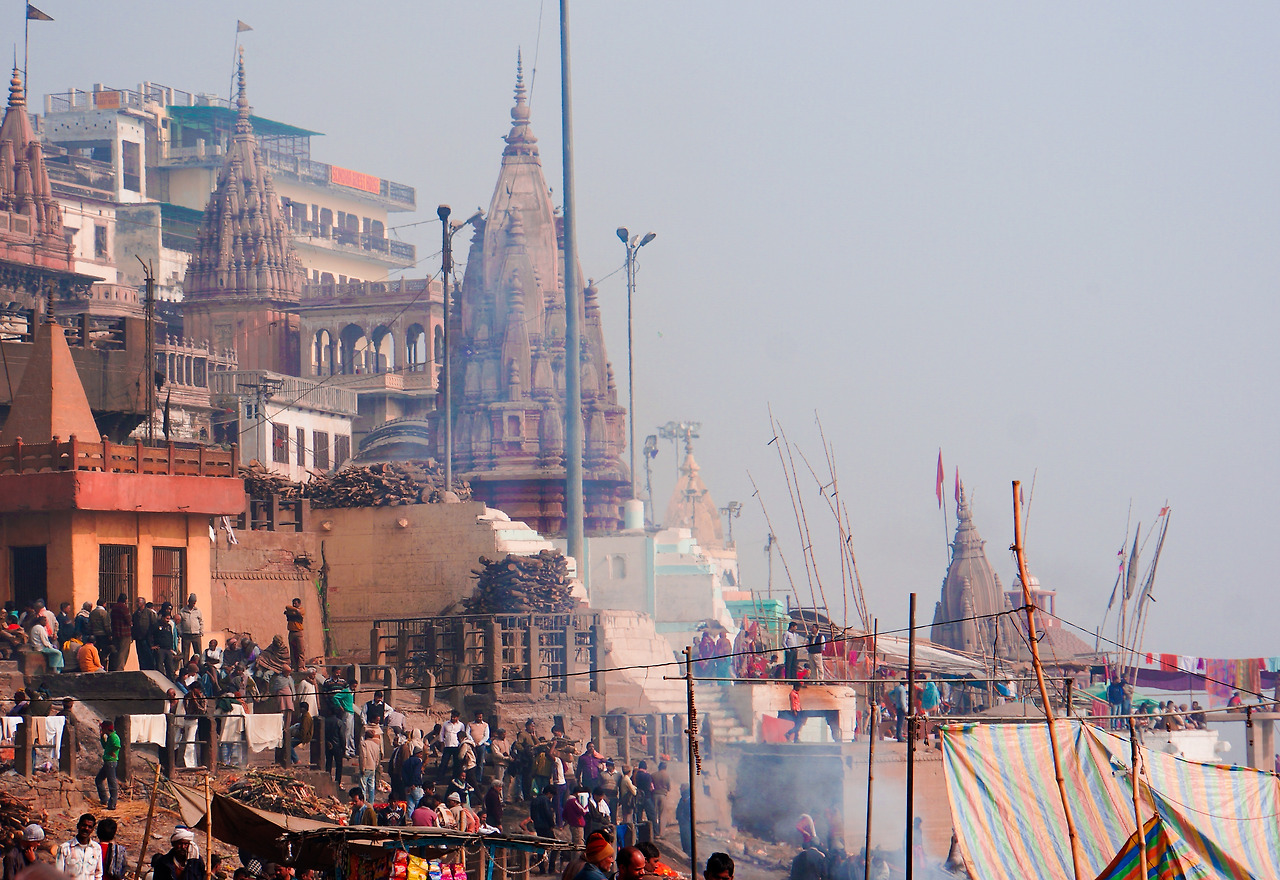 다음 날 아침, 연기를 계속해서 피워대는 화장터로 나가 보았다. 하나, 둘씩 번쩍이는 천을 휘감고 강가로 향하는 행렬을 따라갔다. 강에 다다른 곳에 보이는 움막에는 장작더미가 쌓여있고, 화장을 진행하려는 가족들과 장작더미를 운반하는 사람들, 그리고 그들을 지켜보는 관광객들이 이리저리 자리를 잡는다. 힌두인들이 죽고 나서 여기 갠지스에 뿌려지는 것을 가장 큰 축복으로 생각한다고 하는 만큼, 그들은 죽기 직전에 모여들어, 여기서 죽음을 맞이하고, 강가에서 태워져, 강으로 돌아간다. 재력이 부족하면 장작이 충분하지 못해 사체가 다 타지 못하고 강물로 버려지기도 한단다.