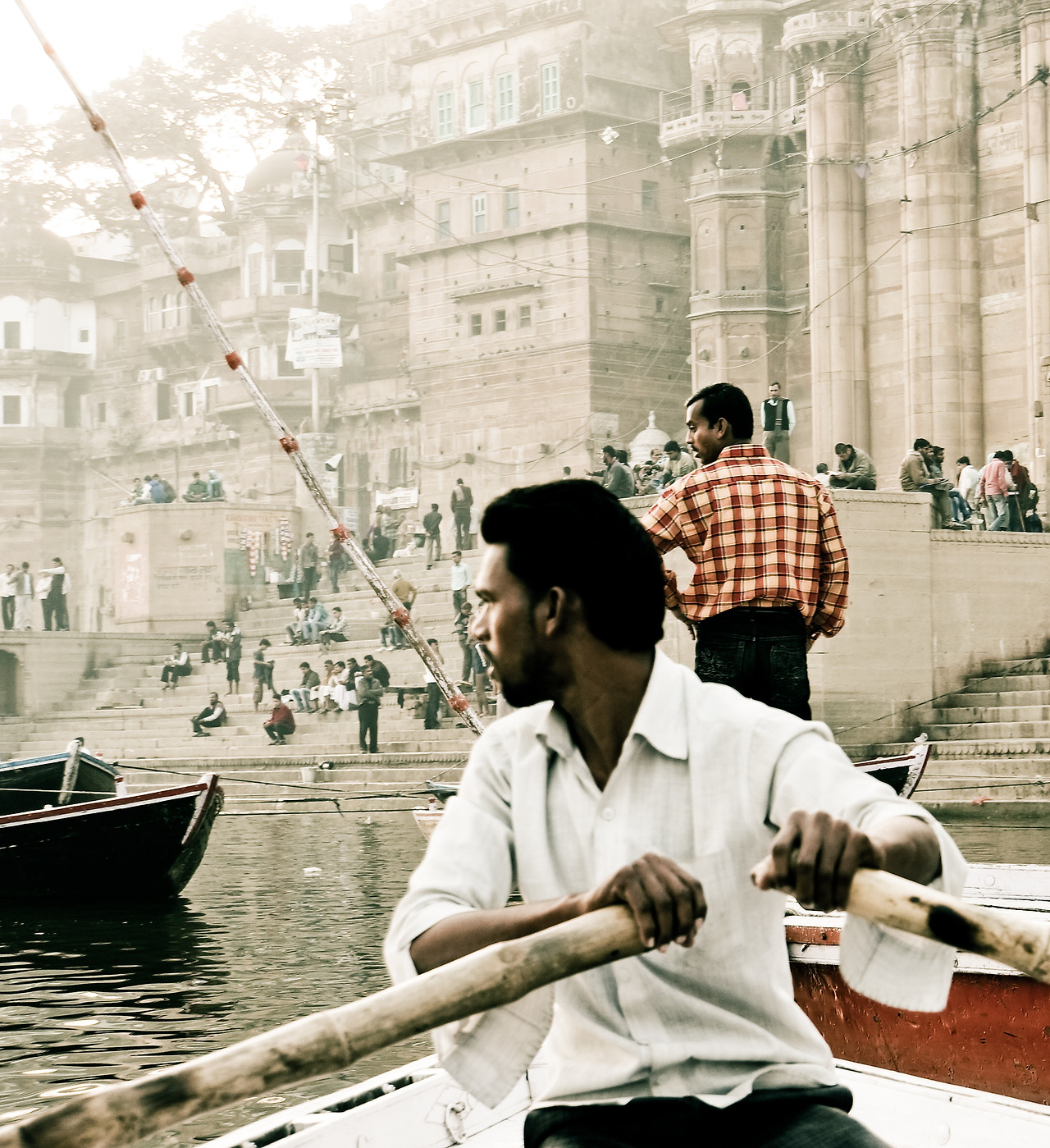 다시 가트. 휘적휘적 산책하다 귀여운 아가씨와 대학생 일행을 만났다. 오랜만의 한국말도 반가웠고, 홀로 다니는 여행 중이라도 간혹 이렇게 마음 맞는 일행을 만나면 들뜨기도 한다. 적극적인 학생들 덕에 의기투합하여 강가의 보트 투어와 ‘뿌자’(puja)라는 힌두식 예배를 함께 보기로 했다. 보트 투어 비용이 얼마일지, 우리끼리 한국말로 뱃삯을 궁금해하는 내용이 어떻게 들렸는지, 갑자기 주변의 왈라들이 구름같이 모여들었다. ‘왈라’는 하대의 호칭으로 꾼, 놈 같은 의미. 예를 들면 나무꾼, 뱃사공 등 몸으로 일하는 사람들에게 흔히 붙이는 호칭이다. 어리숙한 호구 관광객처럼 보였는지, 몰려든 왈라들과 본격적인 흥정이 시작되었다.
