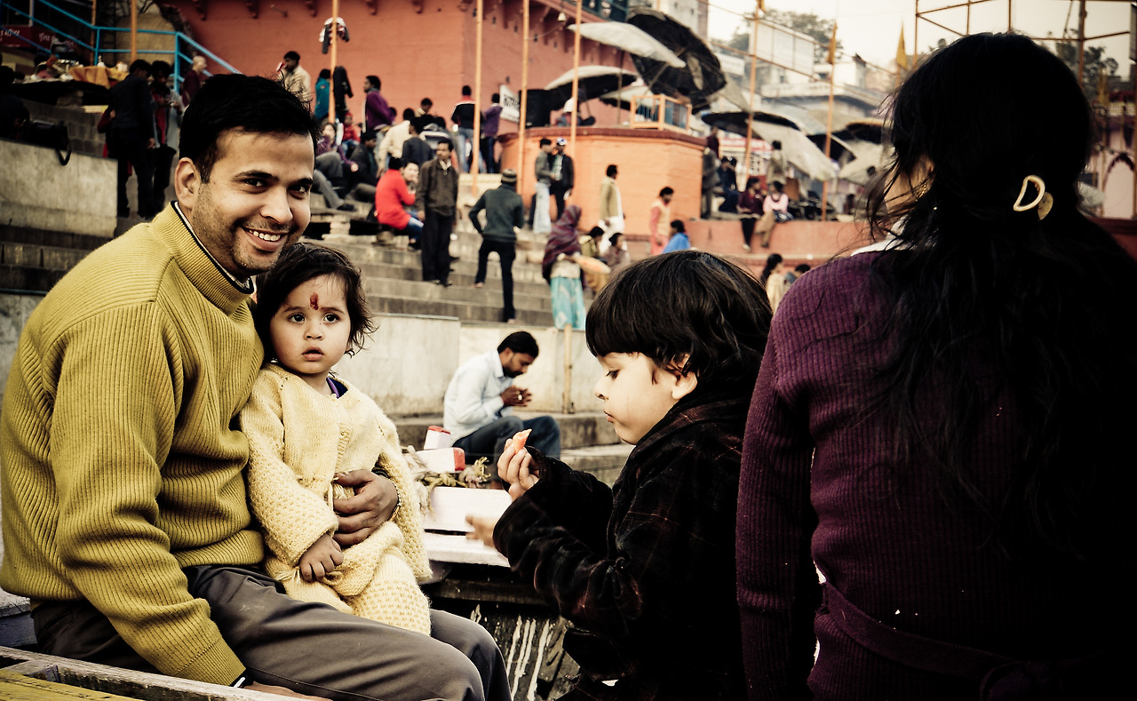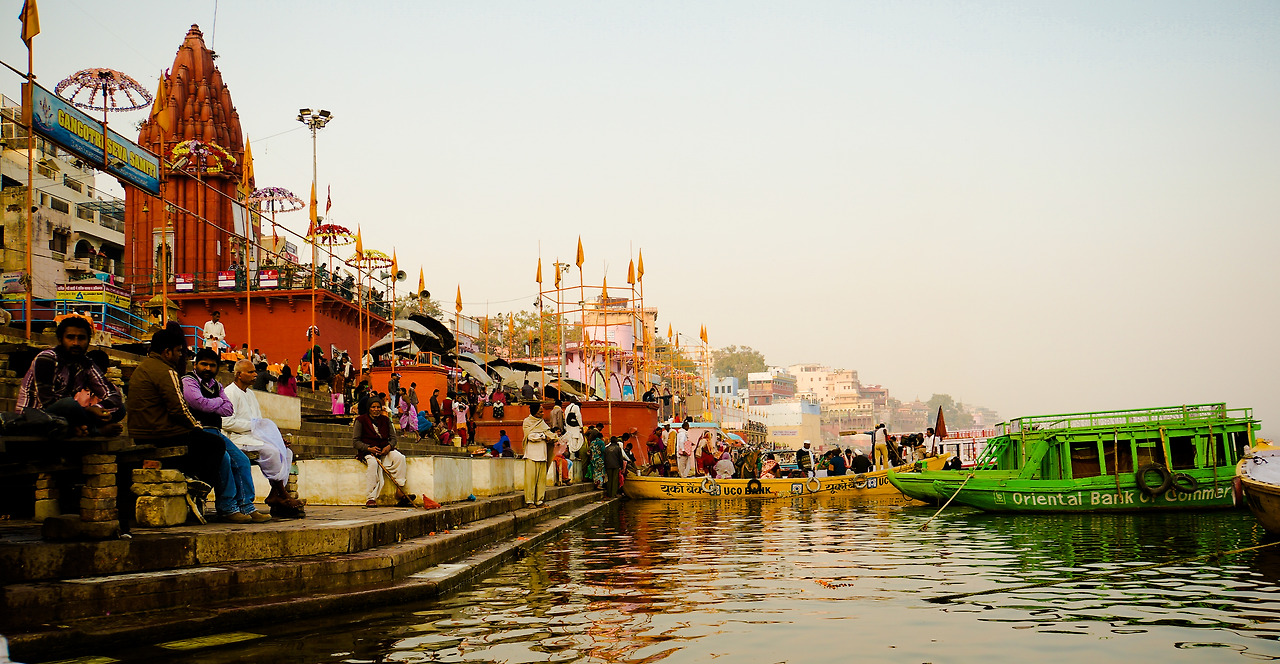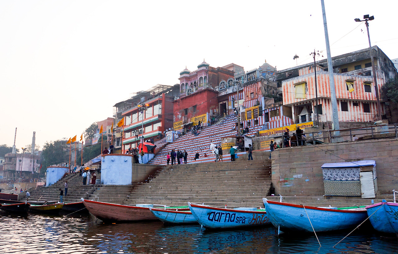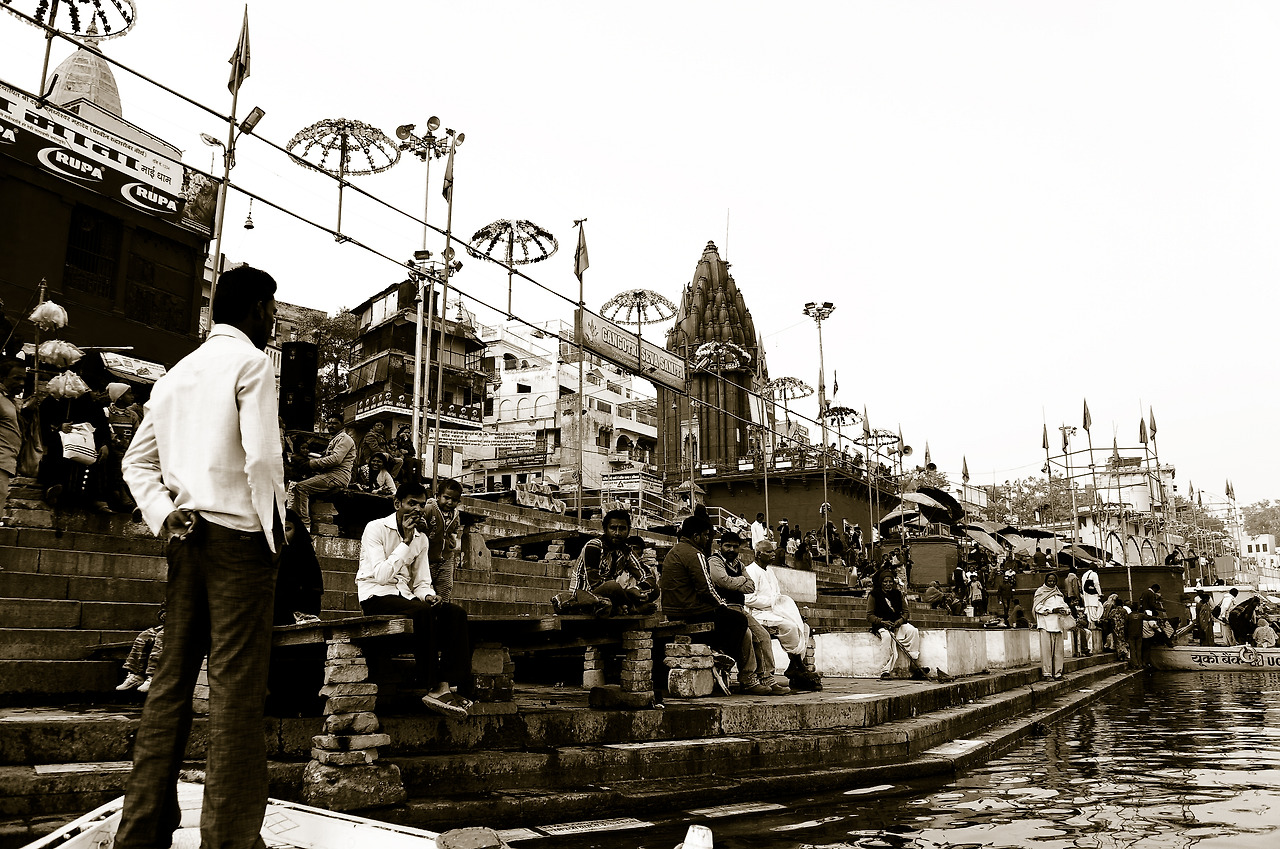 보통 일출, 일몰에 이루어지는 갠지스강의 보트 투어는 강가의 메인 가트에서 출발해서 북쪽의 화장터(burning ghat)를 돌아 남쪽의 화장터를 들러 다시 메인 가트로 돌아오는 코스다. 강 저편엔 어스름하게 노을이 지고 배 위에서 보는 오래된 도시의 모습은 또 새롭다. 우리와 합승한 노부부는 네팔인이었다. 그들은 이곳을 자주 찾을 뿐 아니라, 평양과 서울도 다녀봤다 했다. 보통 이상의 클래스라 짐작되는 멋쟁이 여행객이시다. 처음 만났지만 유쾌한 동행들과 더불어 시원한 강바람을 맞으며 왁자지껄 갠지스강을 휘젓고 들어올 무렵, 해가 거의 저물고 있었다. 사람들이 하나둘 모여드는 가트의 중심. ‘다사스와 메드 가트’로 향했다.