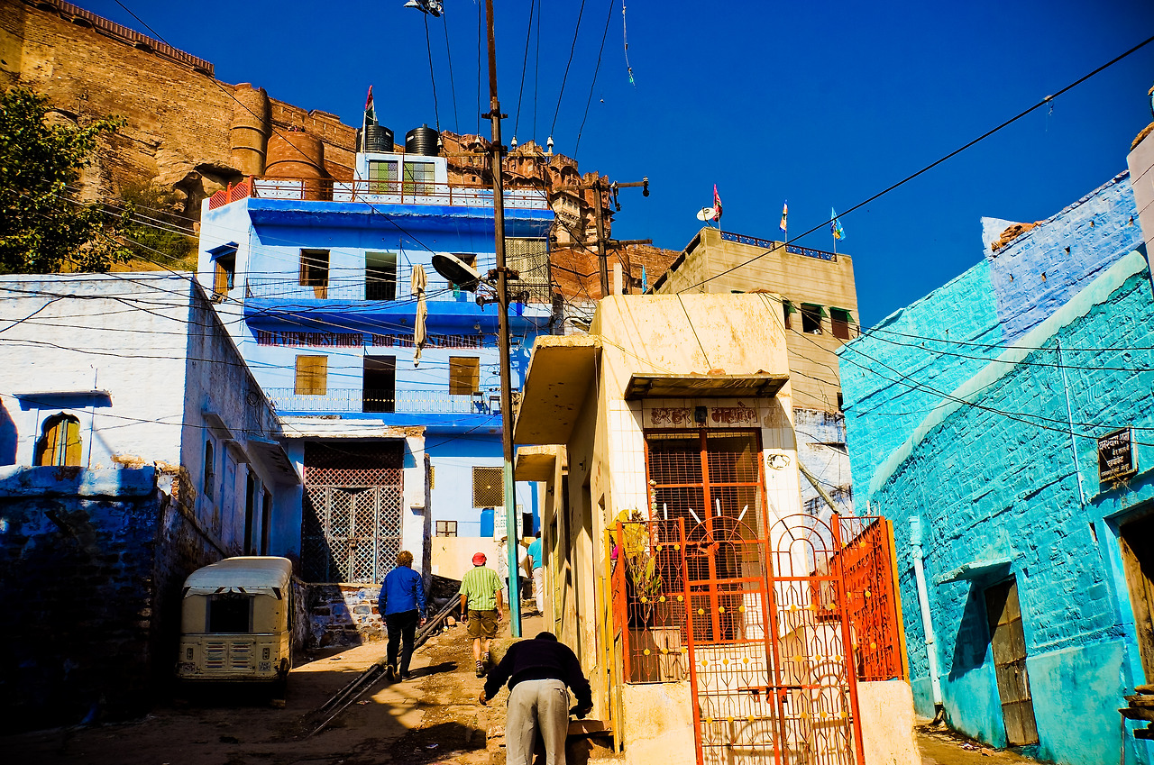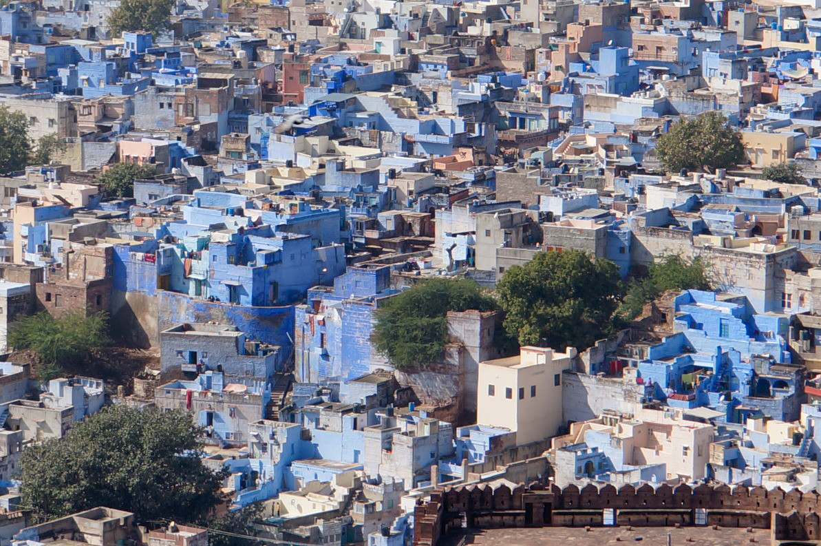 과거 힌두의 여러 신 중 시바를 상징하는 푸른색, 그리고 그들을 섬기는 브라만 사제들이 사용하던 이 푸른 물감은 귀한 것이었기에, 카스트 제도가 엄격할 당시 그 계급만 사용할 수 있던 비싼 푸른색이 계급구조가 허술해지면서 확산한 것이다, 그리고 현재는 '블루 시티'라는 조드푸르의 개성을 이어가려는 의지로 좀 더 적극적으로 활용하는 듯했다. 왠지 그리스의 산토리니나 모로코의 샤프 샤오엔 같은 도시의 푸른색에서 느껴지는 찬란한 파랑보다도 좀 더 처연하게 다가오는 것은, 이런 계급사회의 이면이 녹아있다고 생각해서일지도 모르겠다.