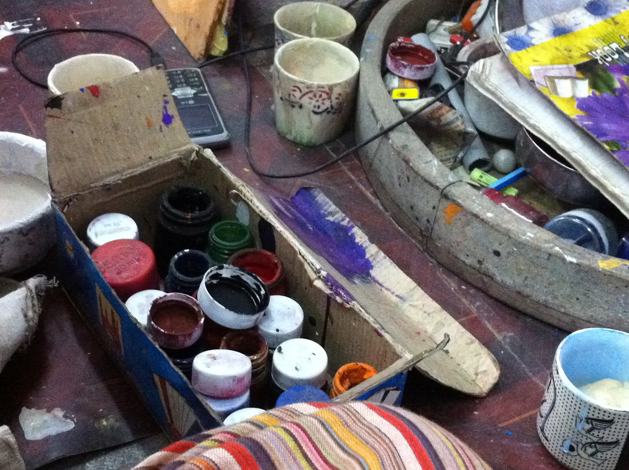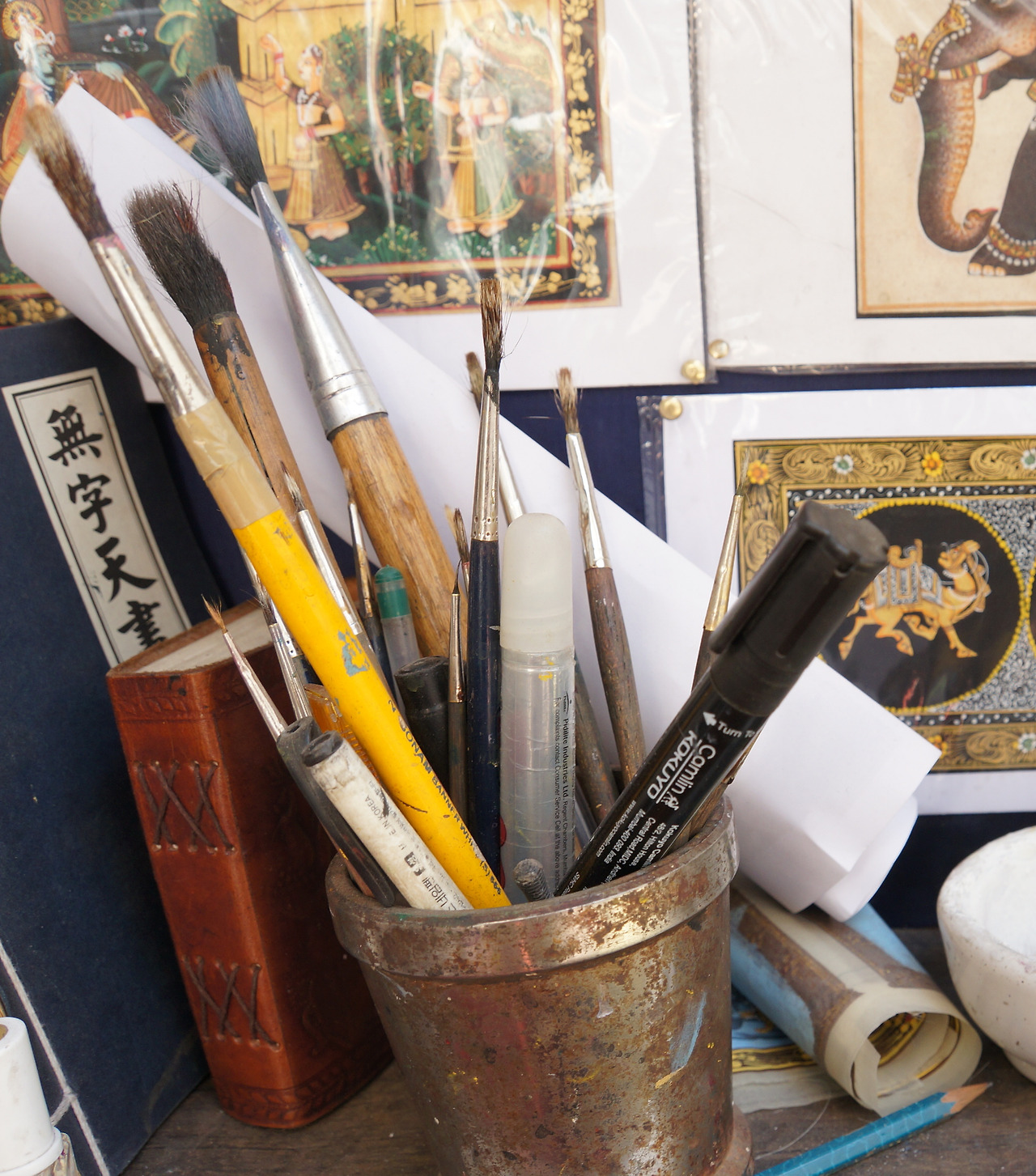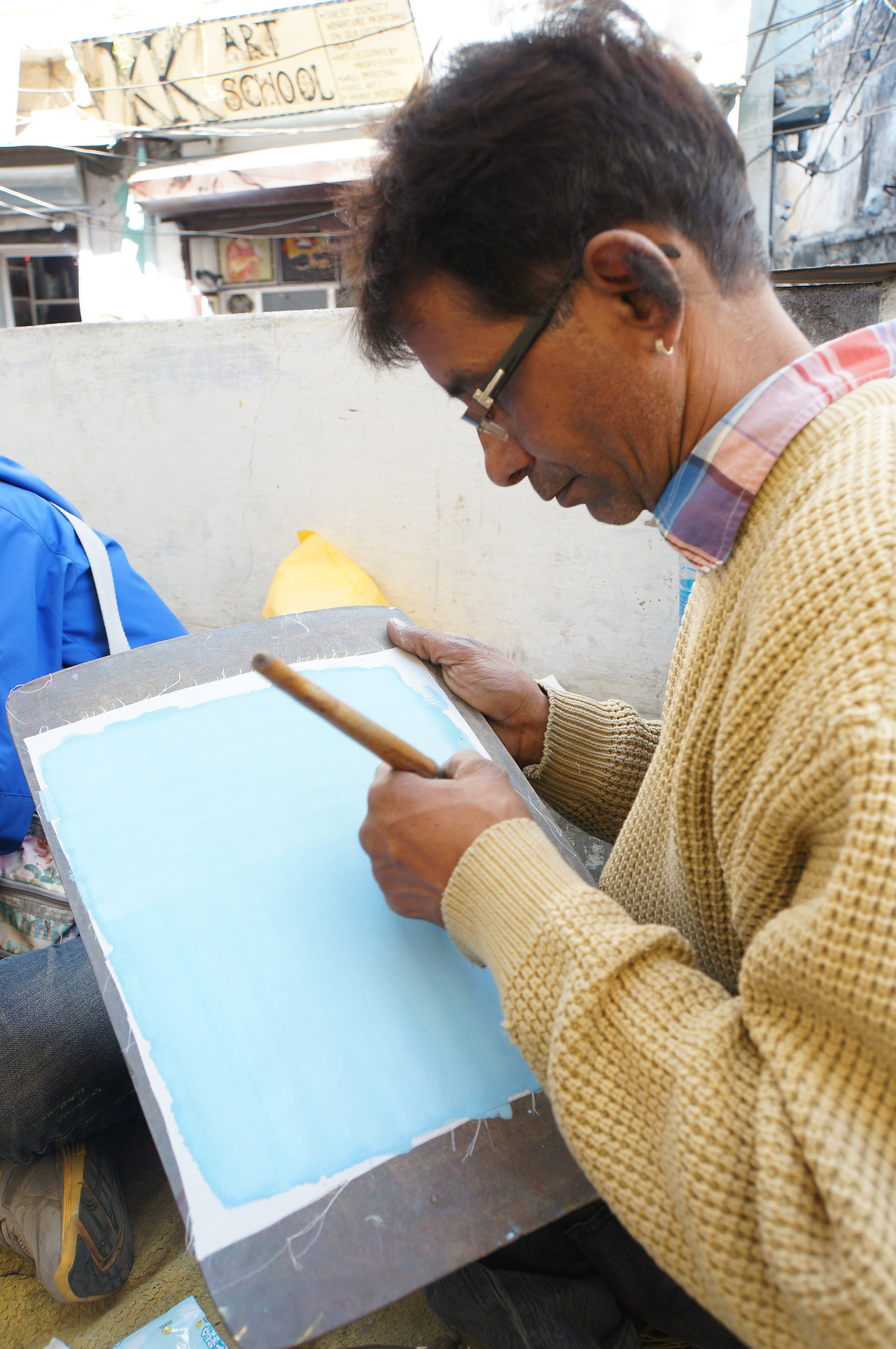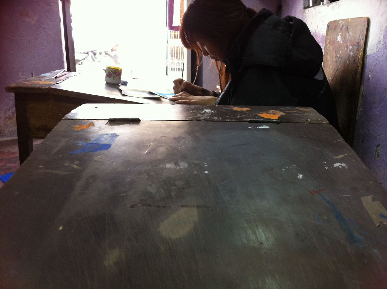 첫날 아침 일찍부터 작은 수공예 공방들을 몇 군데 둘러보았다. 눈에 띄던 사람 많은 중심 거리의 공방보다 뒷골목의 젊은 화공의 공방에 자리를 잡았다. 여기저기 흥정을 하다 보니, 상대적으로 저렴하기도 했고, 손님 없고 한적한 뒷골목에서 조용히 '작업'에 매진하고 싶기도 했다. 아쉬운 점이 있다면 이틀간 배운 작은 공방의 화공 사부께서는 너무 과묵하셨다. 뭔가를 물어보면 자세한 설명 대신 시범을 보여주는 것으로 답을 대신하는 방식이 조금 답답하게 느껴졌다. 그렇게 이틀 동안 레슨을 받고, 다음 날 오후에 한국 대학생들을 만나 공방을 옮기기로 했다. 심심하던 차에 명랑한 학생들과 함께 어울리고 싶었나 보다. 외로움이 좀 가셨다고 해야 할까. 그렇게 남은 3일은 어린 여행 친구들과 번화한 공방에서 다시 작업이 시작되었다.
