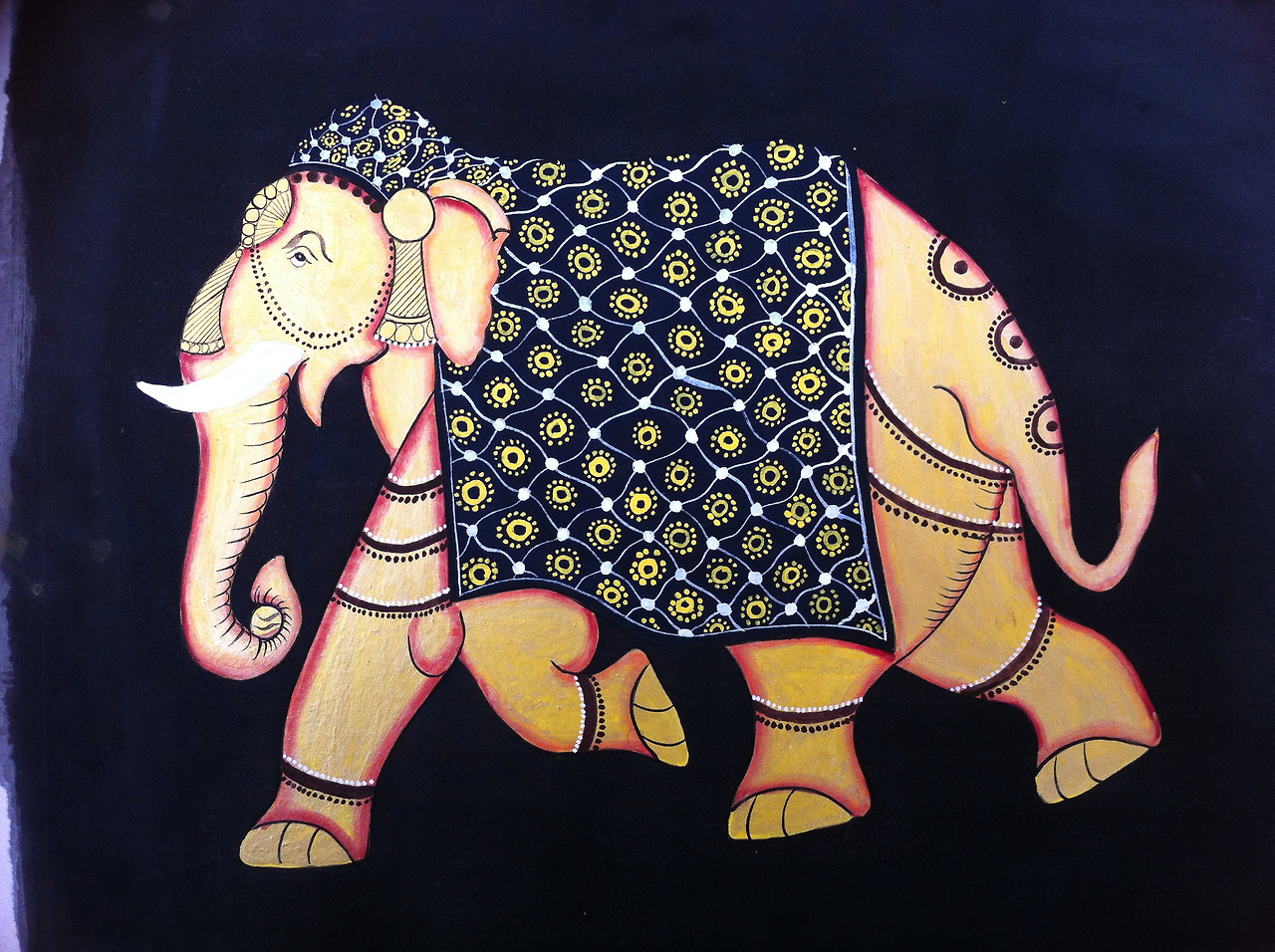 4. 무한 장식에 돌입 : 색면이 지루해질 틈이 없이, 선을 긋고, 점을 찍고, 선과 선으로 나누어진 공간에 또 점이나 패턴을 찍고, 그래도 심심하면 문양을 반복해서 그려주고, 반복된 문양이 또 지루해지면 남는 공간에 또 점이나 다른 패턴을 그려 넣고, 기하 문양, 식물 문양, 기타 등등 맘대로 문양을 차곡차곡 빼곡히 넣어준다.