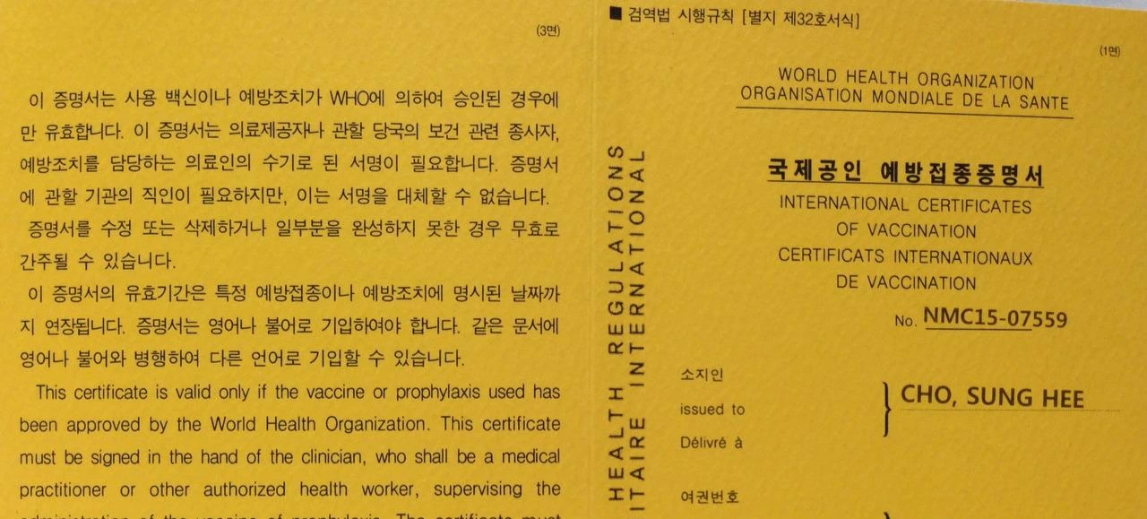 - 황열병 예방접종 - 인천공항에서도 하지만, 국립의료원이 저렴하다고 해서, 바로 접종, 증명서도 발급