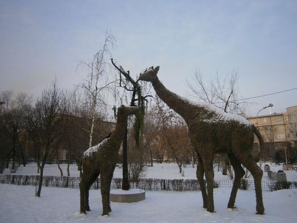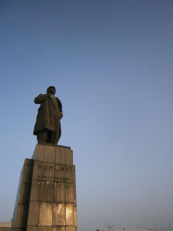 먼저 눈 앞에 보이는 주청사 앞쪽을 둘러보기로 하였다. ‘혁명 광장’ 이라고 불리는 주청사 앞의 공원에는 수많은 조형물들이 있었다. 정중앙에 서 있는 러시아 혁명의 주역인 레닌 동상을 위시하여, 각양각색의 동상들이 눈밭 가운데 서 있었다.