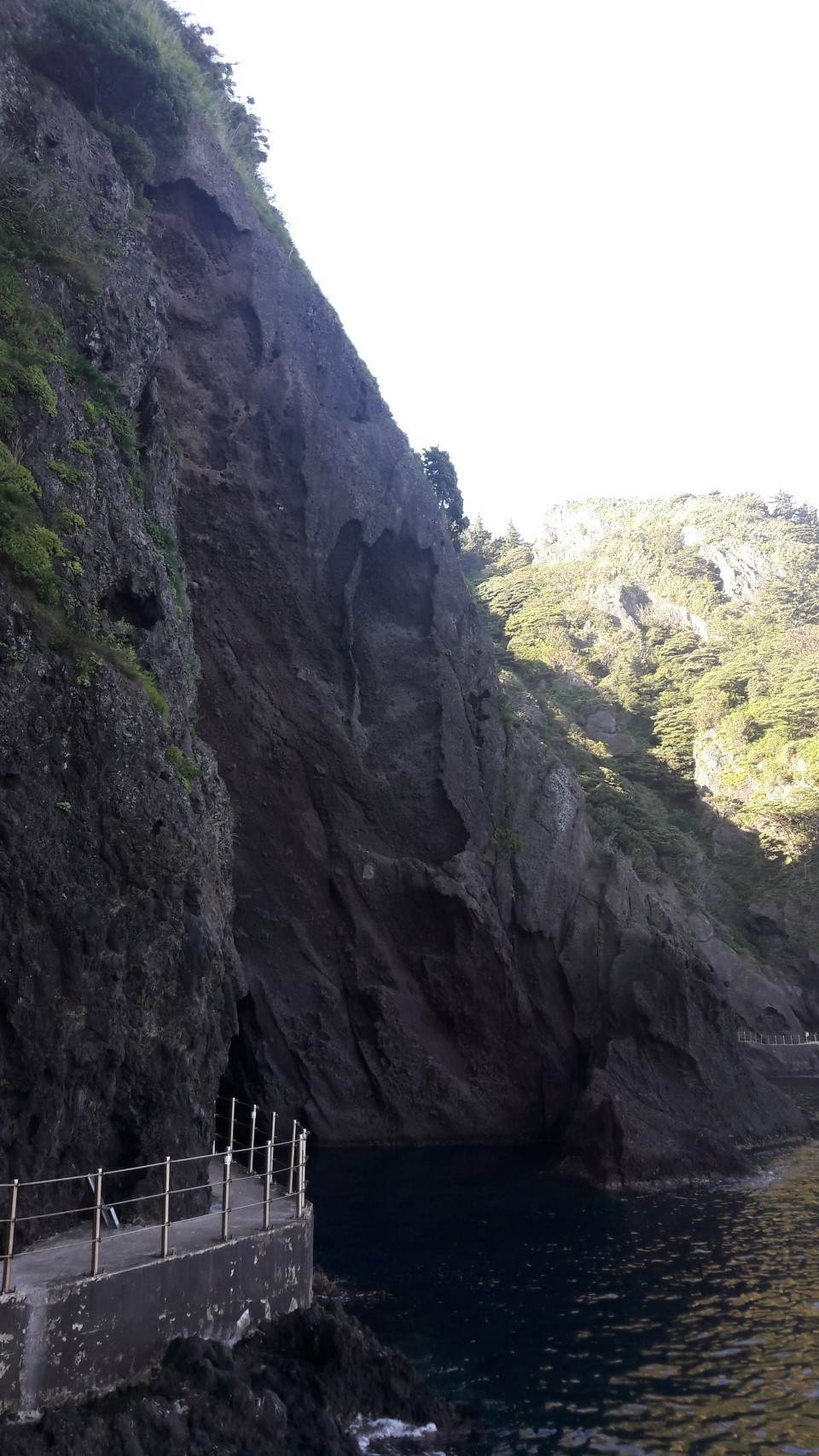 도동 산책로는 말 그대로 절벽에 위치해 있었다. 직접 와보고 나서야 왜 돌이 떨어져서 산책로가 폐쇄되었는지를 알 수 있었다. 깎아지른 듯한 절벽 어쩌고 하는 상투적인 표현은 여기에서는 조금 접어 두어야 할 것이다. 그렇게 묘사 해야 할 곳이 한두군데가 아니기에. 곧 바위가 떨어져도 이상하지 않을 절벽자락에, 시멘트와 철골로 간신히 사람이 다닐 곳을 만들어 산책로를 만들어 놓았다. 동틀녘의 모습을 보지는 못했지만, 절벽 아래 가린 석양이 그림자로 절벽에 병풍을 기대어 놓은 모습이 좋았다. 아마 아침에는 정면으로 내리쬐는 태양에 제대로 구경을 하지 못했을 수도 있겠다는 생각이 들었다.
