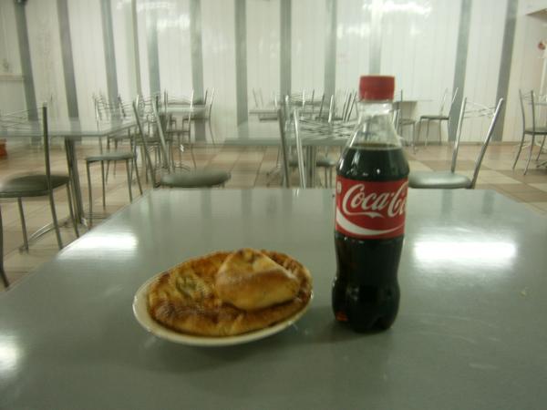 버스정류장에 도착하고, 지브노고르스크에 가는 표를 구입하고 나서야 시간적인 여유가 조금 생겼다. 점심을 간단하게 때우기 위해 들어간 식당에는, 아무도 없었다. 심지어 종업원도 없었다. 주방 안으로 고래고래 소리를 지르고 나서야, 직원 한 명이 대놓고 불친절해 보이는 얼굴로 주문을 받으러 나왔다. 가판대에 그려진 메뉴에서, 일단 피자와 러시아 전통 빵 중에 하나인 삼사, 그리고 콜라를 주문하려 하는데...