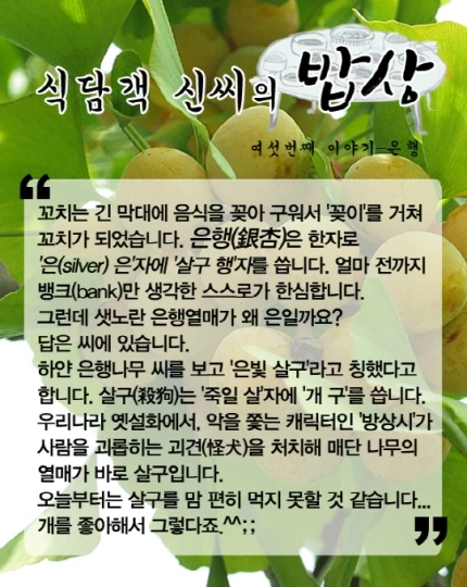 은행나무의 ‘하얀 씨’를 보고 '은빛 살구'라고 칭했다고 합니다.