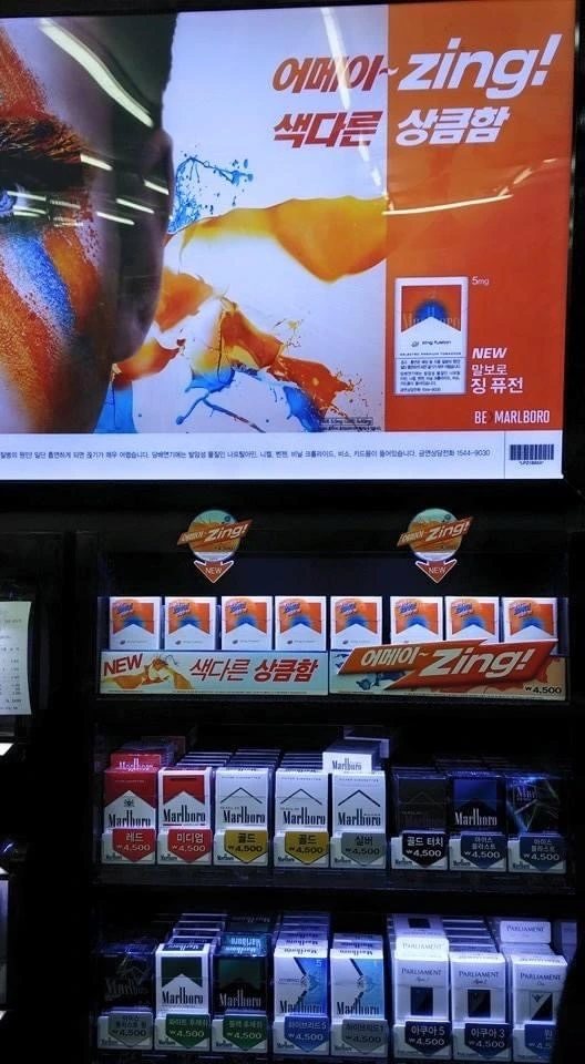 편의점 계산대 앞에서 신제품 담배 홍보판을 보다가, 별생각을 다 한다.