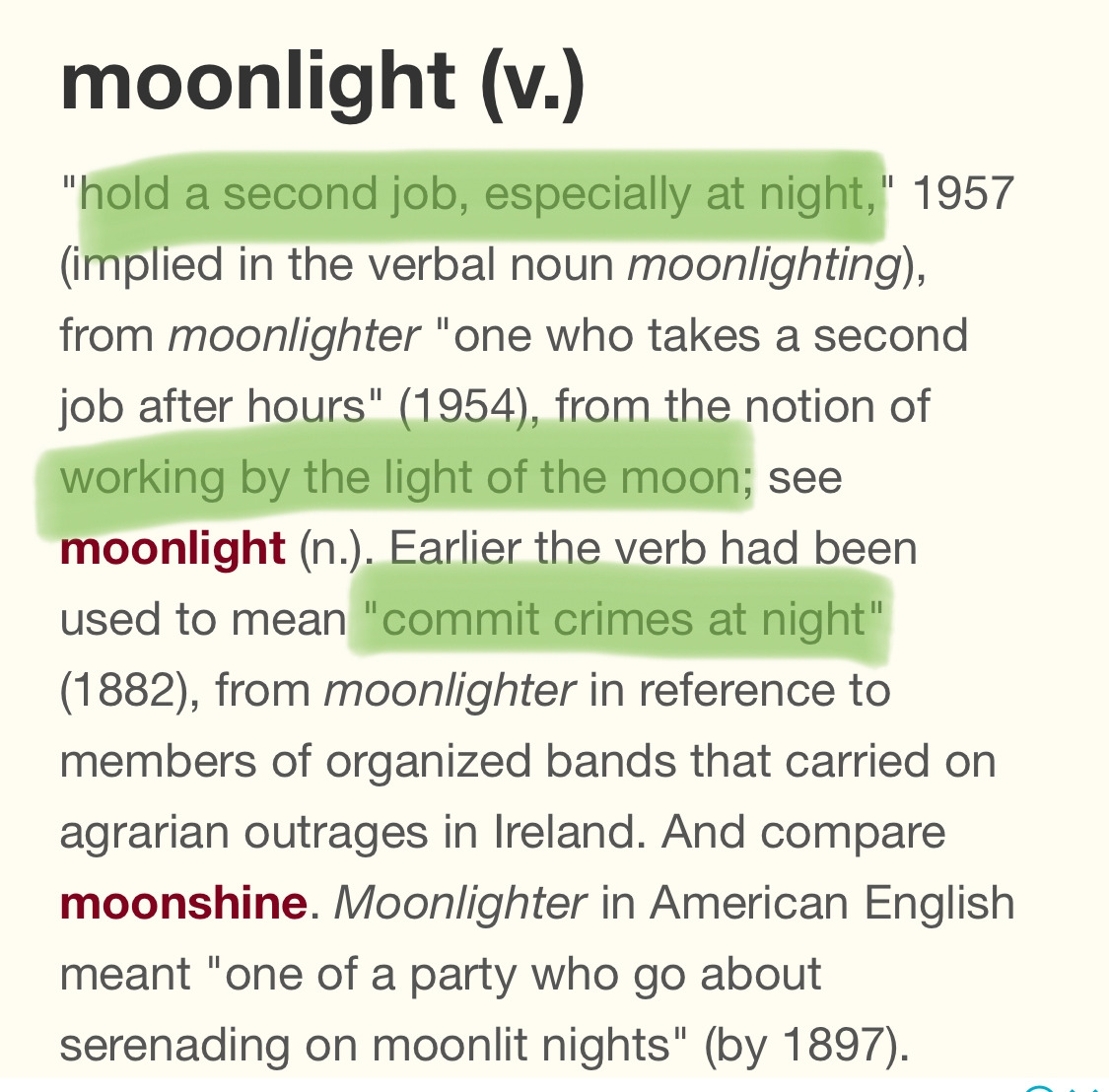 '달빛 비춤'외의 'moonlighting'의 의미를 알고 피식 웃었습니다.