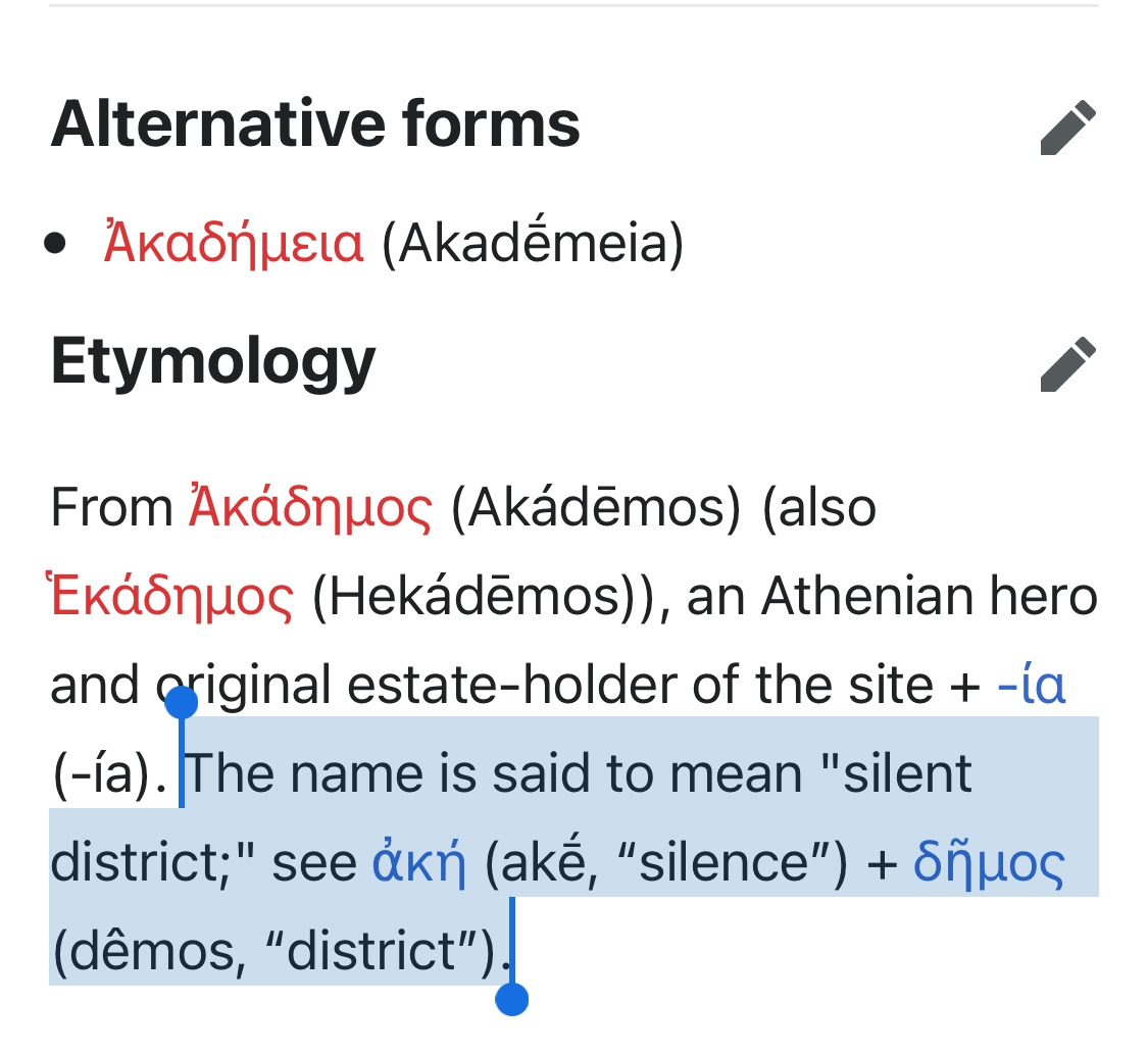 akademia는 그리스 신화의 영웅 Akademos에서 왔습니다.