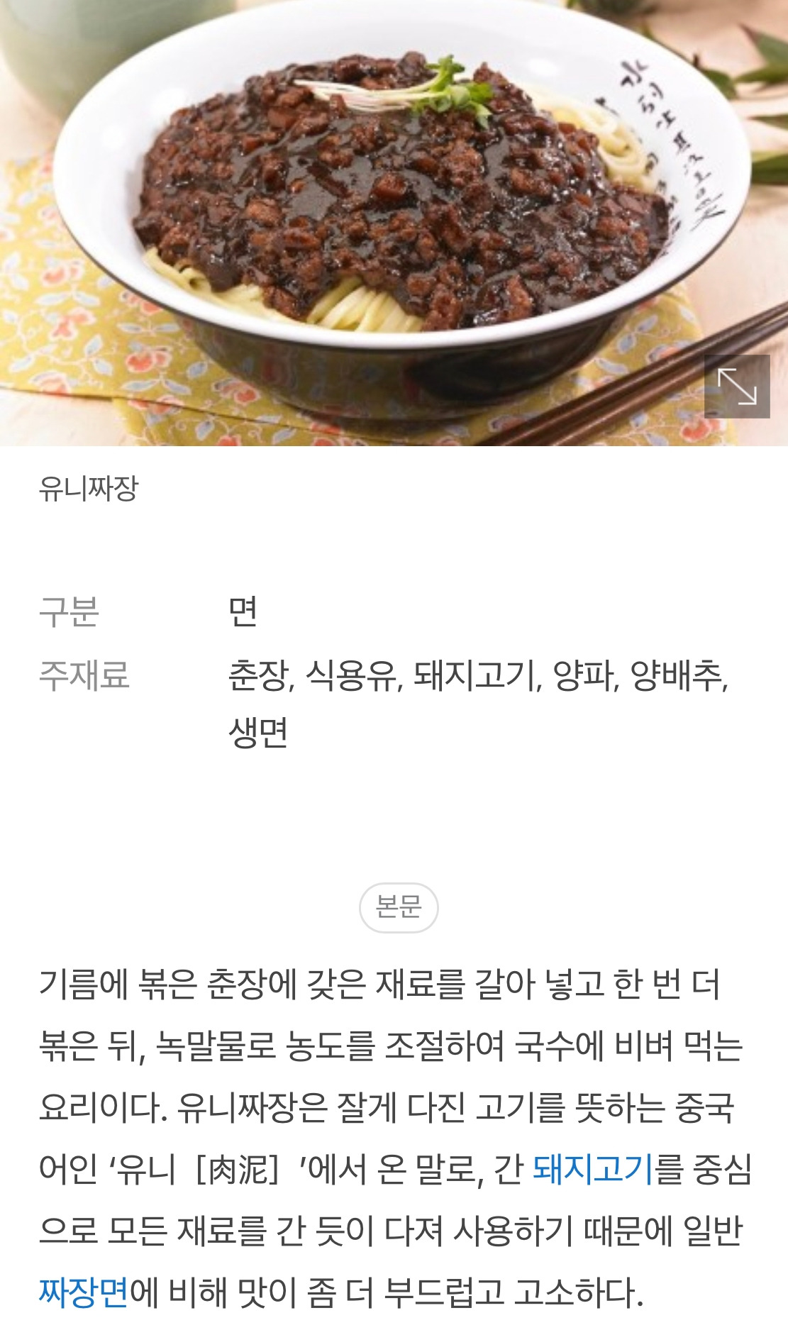 유니짜장은 고기 육(肉), 진흙 니(泥)자를 씁니다.