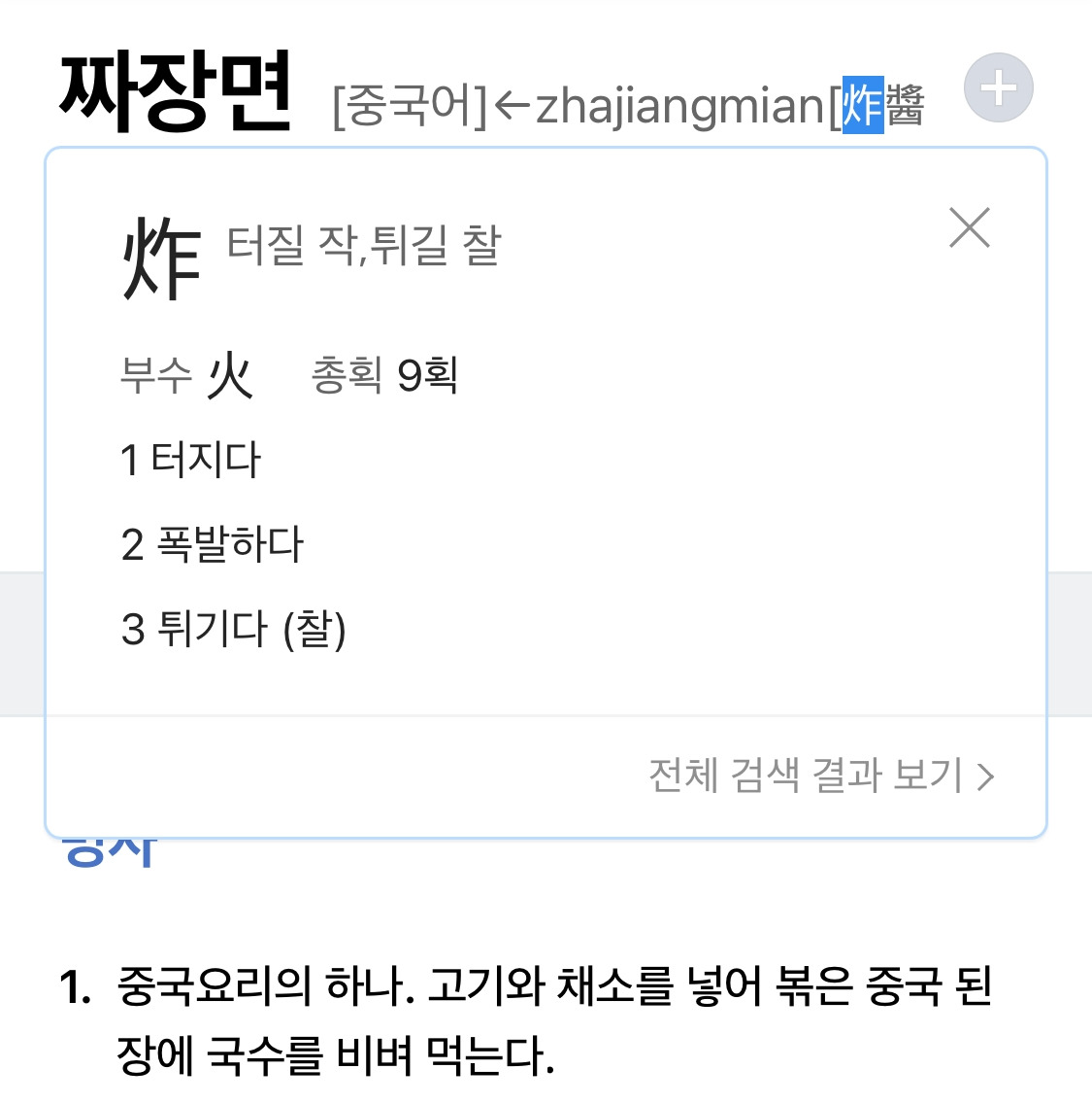 짜장의 한자는 튀길 작(炸), 장 장(醬)입니다.